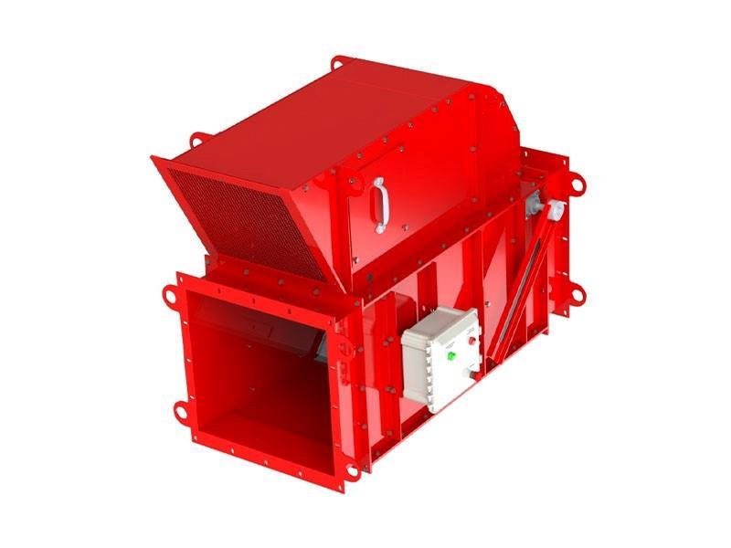 DUST-EX HSAG-24 Packaged Safety Solution for a 22"x22" (24" dia. round equivalent) Return Air Rated for 10,000 CFM. System for mitigating fire and explosions in combustible dust environments, for the woodworking industries. Generally includes Abort Gate, Non -Return Valve and Spark Detection/Suppression Hardware and Controls as follows: -- 1.) VigiFlap Dust Sensor, Dirty Air 22": Sensor, dust level, adjustable capacitive for organic dust, requires intrinsic safety system (will not trigger combustion or ignition in gasses or fuels). -- 2.) VigiFlap Explosion Isolation Flap Valve (Non-Return) Valve, EV-VF22 (EPDM); 22" diameter, flanged inlet and outlet, locking mechanism; welded steel construction, safety red painted finish, domed flap (stainless steel), inspection/access door, EPDM gasket, grounding straps, inductive shutdown sensor, normally open or closed flap orientation, certified ATEX EN 16447, NFPA 69 compliant. -- 3,) Control Panel. One-Zone CP05 Control Panel 1 inlet, 1 outlet: UL698A Control Panel for use with NFPA 69 compliant Explosion Isolation Valves. Standard panel includes status lights, intrinsically safe circuit (1 Per Zone), monitored inputs (3 total), ability to add a secondary clean air isolation valve, output for system shut down and monitoring, drawings, installation instructions, NEMA 4 outdoor rated enclosure, UL and Canada UL listings. Allows for 120VAC or 24VDC input power. -- 4,) SPARK DETECTION & EXTINGUISHING, SINGLE ZONE, KIT for pipe sizes 20?- 40? diameters; includes Raptor Spark RS-CUSP1L Control Panel, (2) Spark Detectors, Extinguishing Kit, Flexible hoses, Audible Alarm & Warning Light. Single zone spark detection and extinguishing kit for duct sizes of ?20" - 39" diameter, RS-KIT02, includes Raptor Spark RS-CUSP1L control panel, (1) RS-PDK02 packaged detector kit with (2) spark detectors with mounting kits, (1) RS-PWE02 water extinguishing assembly with hose connections and spray nozzles, audible alarm, warning light, battery back up - ATEX certified, CE listed, FM approved. -- 5.) Packaged External Test Lamp Kit, RS-TLK02, duct sizes: 6" - 39" diameter, (2) RS-SD02 test lamps with (2) RS-MK02SD/TL mounting kits - IP 65 enclosure, ATEX certified, CE listed, FM approved. -- 6.) Optional Start up Service Assistance: a.) Start Up - Day Rate @ $1,750/day. b.) Travel Service: Day Rate @ $900/day. c.) Travel Expenses: Total $110/hr. - min. two hrs. required - total $220. c.) Start Up Service Hourly Rate is $160/hr. Min. (4) hrs. needed for a total $640. -- 7.) High Speed Abort Gate, EM-HSAG02-24, magnetic (24 VDC), 22" x 22" flanged inlet and outlet (24" round equivalent), control panel for, magnet power with status lights and manual test button, gate position verification monitoring, manual reset lever, weather hood with bird screen. Maximum volume and velocity: 10,000 CFM / 3000 FPM, clean air installations only, NFPA compliant when installed with listed spark detection system. -- 8.) Packaged dust probe