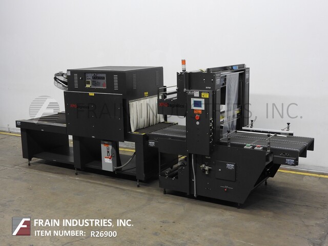Eastey Model EB35A, automatic, inline, intermittent motion, shrink bundler. Package size: up to 35" in Width; up to 22" in Height. Equipped with dual 47" long by 30" (2×15") wide flex link in-feed and discharge conveyors, 36" wide hot knife seal jaw with 23" of vertical travel and PLC touch pad controller. Additional features E-Stops and status light bar. Accepts film up to 14" in diameter.