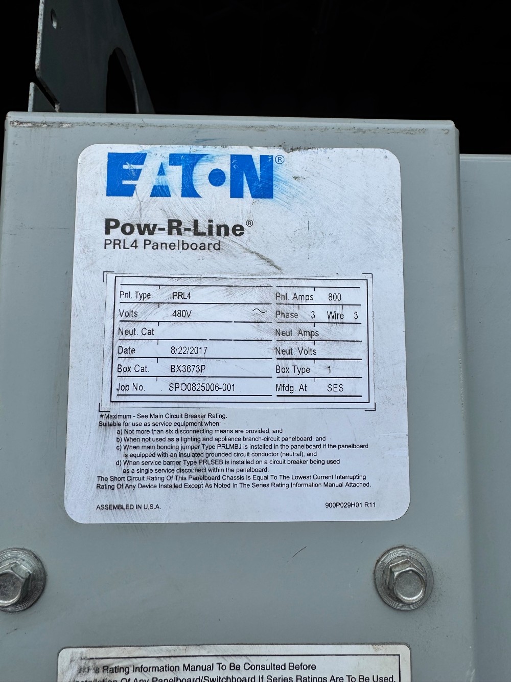 WE CAN SHIP THIS ITEM!, Eaton PRL4 Panelboard 800A 480/277V 3PH 3R Enclosure PDG43G0800FNNN CAN SHIP, Brand: EatonModel: PRL4 Type: Panelboard 800 Amp 480/277V3 PhaseType 3R Enclosure Circuit Breaker: PDG43G0800FNNN.