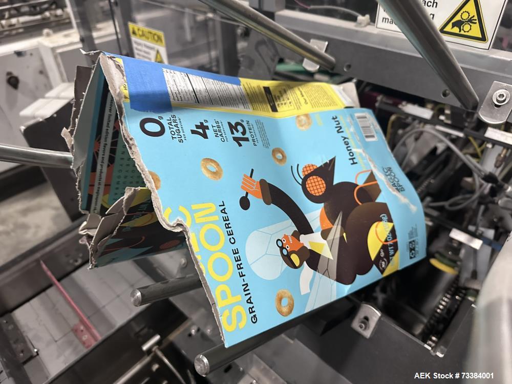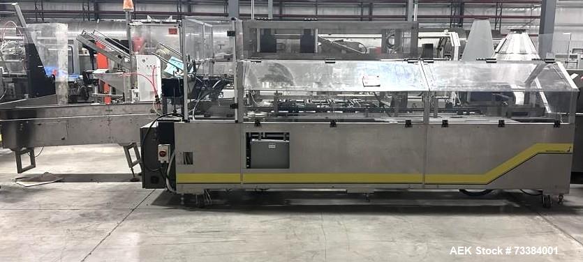 Econocorp Econoseal Automatic Horizontal Cartoner type E-System 2000 Model 6463 hot glue, stainless steel construction, carton size minimum 1" x 3/4" x 2-1/2"; maximum 12" x 4" x 12", speeds up to 1,500 units per hour depending on a carton style, electrical 220 volts, 60 hz, air 80 psi (6.6 bar), serial number 645 ...more