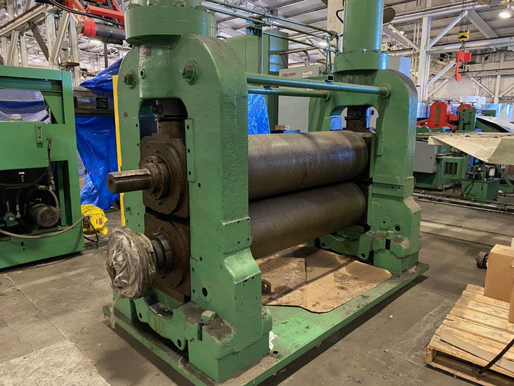 WIDTH OF ROLLS. 24", DIAMETER OF ROLLS. 12", ADJUSTMENT. 2-1/2", AIR CLUTCH. YES, VARIABLE SPEED MOTOR. 20HP.