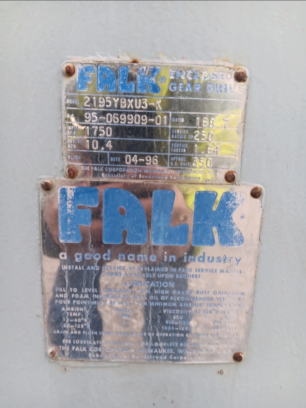 Heavy-duty Falk enclosed gear drive, model 2195YBXU3-K, built for industrial mechanical power transmission applications. This gearbox features a 168.7:1 reduction ratio, designed to convert high-speed input from an electric motor or prime mover into much lower output speeds while significantly increasing torque. Gear drives of this type are rugged, reliable, and engineered for continuous duty in demanding environments.