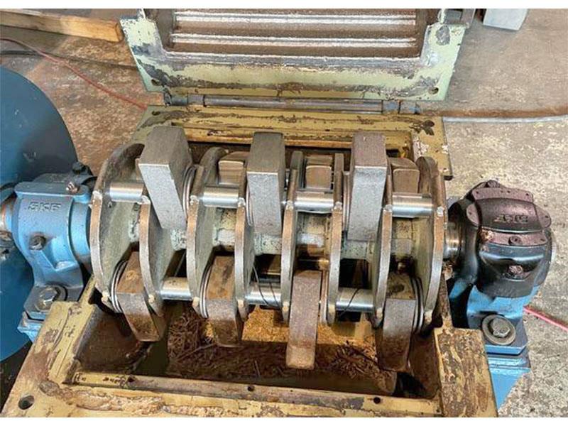 One (1) used Mitts & Merrill Hog Grinder Model 13CSE 15" x 27" feed opening 18 knives Discharge screen has 0.44" diameter holes outboard roller bearings Motor: 300 HP, 460 voltage, 3 phase, 1180 RPM direct coupled a motor starter: Size 6 a Square D disconnect.