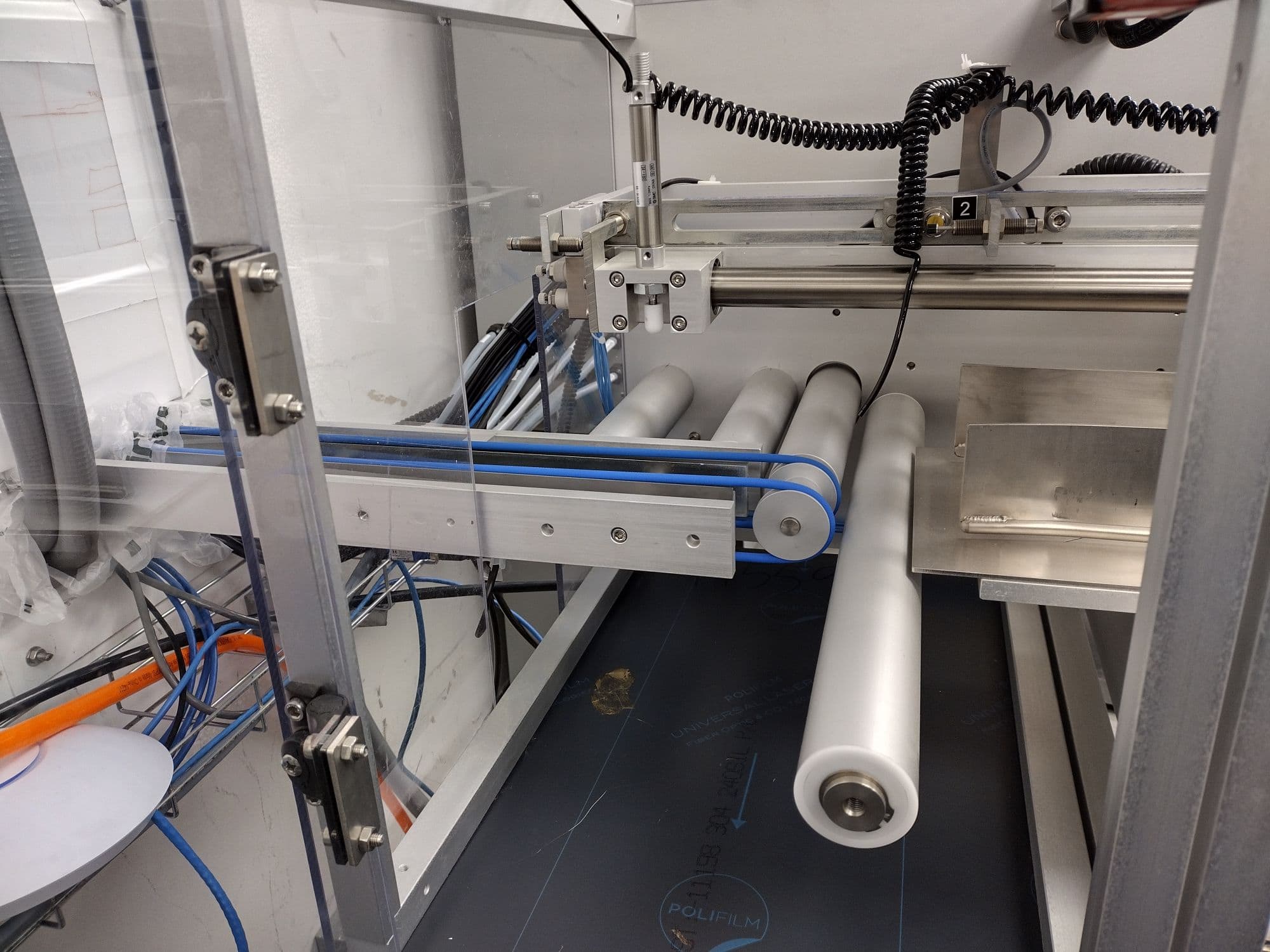 Safety System: Full interlocked guarding (polycarbonate hinged doors), E-stop with air dump and reset, lockable main isolator .