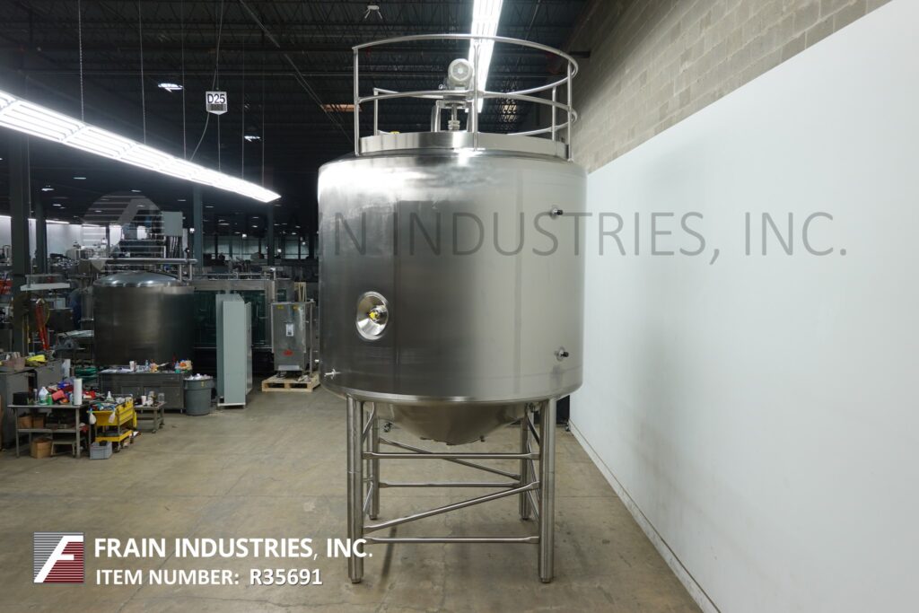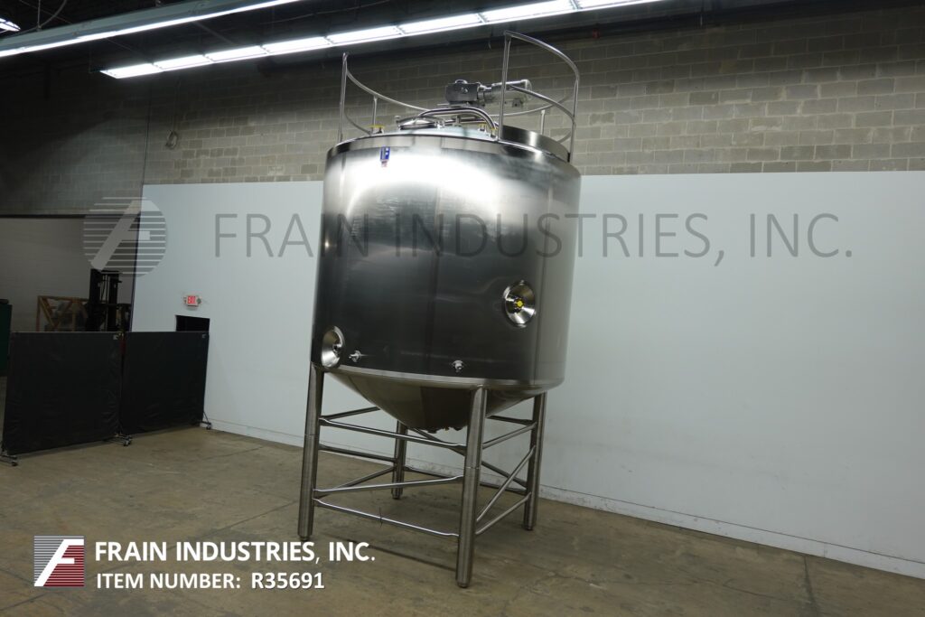 Used 4,150 gallon 304 stainless steel, jacketed, cone bottom vessel. Manufactured by Mueller. Internal 15 PSI @ 100F. Dome top. 97 7/16" OD x 219" tall, (4) leg mounted. Serial #164585-1. Previous use: 150 BBL Brewery Fermentation Vessel., MUELLER 4,150 GALLON, Capacity. 4,150 gal, Diameter. 97", Height. 219", Type of ...more