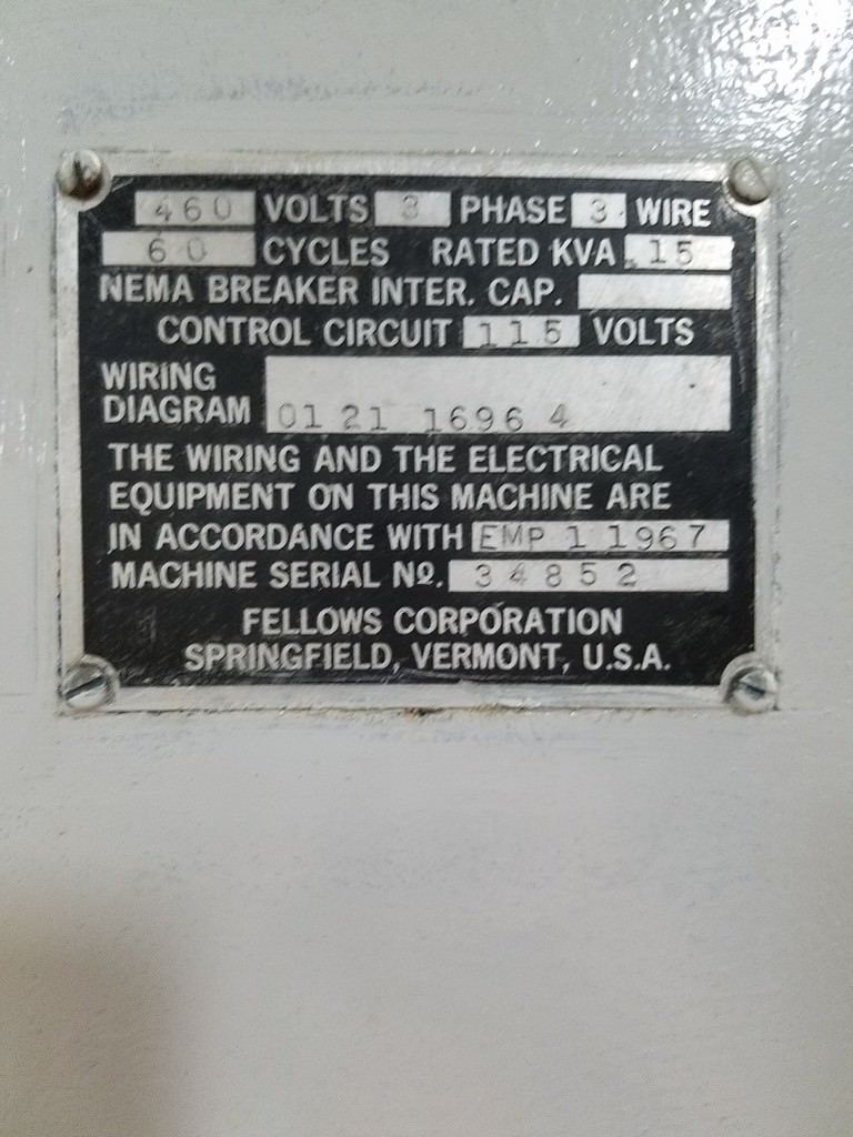 Fellows #10-4, Fanuc PowerMate D, 10" dia., 4" face,cutter guard assembly,tailstock, #29369 Manufacturer: Fellows Model: 10-4 Stock # 29369 Request a Quote 5 For Sale by Prestige Equipment Corp Surplus Record Dealer Since 1991 Contact Seller Melville, NY Paul Lashin 631-24...> Show Seller's Phone Number 631-249-5566 Let the seller know you found their listing on Surplus Record! View More Prestige Equipment Corp 's ListingsDescription CAPACITIES:Max Pitch Diameter, External: 10"Min Pitch Diameter, Internal: 10"Max Diametral Pitch, Spur: 4 DPMax Diametral Pitch, Helical: 5 DPMax Face Width: 4"Max Helix Angle w/ 5" Cutter: 45 DegMax O D of Fixture: 19"Max Stroke Length: 5"Max Strokes Per Minute: 800 SPMDistance - Tabletop to Spindle: 8"Feed Per Stroke: .001-.040Cutter Spindle Diameter: 3.543"Work Spindle Bore Diameter: 5.875"Work spindle bore depth: 10"Table Top to Cutter Spindle Underside,:- In Uppermost Position: 13.23"Worktable C L to Cutter Spindle CL: 9.06"Maximum OD of Fixture: 19"Rotary Feed Per 1" of Stroke: .001"-.012"Rotary Feed For Multi-Pass: .001-.020"Radial Feed Range Per Stroke: .0001"-.020"Max Radial Feed Per Minute: .12"Machine Dimensions: 93" x 103"Machine Height: 101"Approx. Machine Weight: 12,000 Lbs.Equipped With:GE Fanuc Powermate D 2-Axis CNC Control, 1999/2000 RetrofitTailstockHydraulically Operated Cutter Guard AssemblyHydraulically Operated Collet Fixture Clamping15 HP Main Drive MotorNOTE:The Fanuc Powermate control is a 2-axis control and the only changesyou need to make are for index or number of teeth in the part. This is doneby changing only (2) two change gears in the back of the machine fordifferent numbers of teeth. If you are running production then this shouldbe a non-issue.LOCATION:Inspect Under Power In North CarolinaFeatures:GE Fanuc PowerMate D 2-Axis CNC Control, 1999 RetrofitHydraulically Operated Collet Fixture15 HP Main Drive Motor4" Bore Workslide CylinderOutboard SupportTapered Riser Block, (2" Front, 1" Rear)Tailstock Request More Information from SellerGet Your Price from Prestige Equipment Corp! "*" indicates required fieldsName*Company*Email* PhoneZip / Postal Code*QuestionMake an OfferRequests Send me a shipping quote I am interested in financingSend Copy Email me a confirmation of this inquiryBuyer Protection Use our partner Escrow.com to buy or sell equipment safelyBuyer Protection Send me info about buyer protectionThis field is hidden when viewing the formDealer Email Buyers Who Viewed This Listing Also Viewed … Fellows #10-4, vertical gear shaper, 13" dia., 4" stroke, 3" riser, hydraulic table clamping, serial #34475Category: Gear ShapersSeller: Piselli EnterprisesLocation: Statesville, NC Mfr: FellowsModel: 10-4Fellows model 10-4 vertical gear shaper 13" diameter 4" stroke, 3" riser, hyd table clamping, good condition gone through s/n 34475. Fellows #10-4, gear shaping machine, 10" pitch diameter, 4" face, 3.5" spindle diameter, 4" stroke, AB PLC-2Category: Gear ShapersSeller: Piselli EnterprisesLocation: Statesville, NC Mfr: FellowsModel: 10-4Fellows model 10-4 Gear shaping machine, 10" diameter, 4" stroke capacity, Cutter at top, A/B PLC 2 control, Plumbed & wired for a tailstock, new cutter spindle & Bushing inspect in NC.. Fellows #10-2, High Production Gear Shaper, 10" max. pitch diameter, 2" face width, 7.5 HP, 70-1260 RPM, 3PH, 1977Category: Gear ShapersSeller: Adams MachineryLocation: Libertyville, IL Mfr: FellowsModel: 10-2Year: 1977Maximum Pitch Diameter, External 10" Maximum Diametrical Pitch: Spur 4 Maximum Diametrical Pitch: Helical 5 Maximum Face Width 2" Distance Table Top to Shaper Spindle Casting 12" Maximum Helix Angle (using 5" Cutter) 45° Maximum OD of Fixture 19" Spindle Stroking Speeds (Variable) 70 - 1260 RPM Feed per ...more Fellows #36Z-13, gear shaper, spur guide, 22" riser, Trabon lube, coolant pump, 1975Category: Gear ShapersSeller: Gibbs Machinery CoLocation: Warren, MI Mfr: FellowsModel: 36Z-13Year: 19751975 FELLOWS 36Z-13, Spur Guide, 22" Riser, Trabon Lube, Coolant Pump, Change Gears, 2-Cut Cycle, 460/3/60 Motor & Controls, Guide. Spur, Maximum External Gear Diameter. 36", Maximum Internal Gear Diameter. 40", Diametral Pitch. 3, Riser. 22", Stroke. 13", Control Manufacturer. Conventional. Fellows #10-2, gear shaperCategory: Gear ShapersSeller: Lee Stevens Machinery Inc.Location: Whitmore Lake, MI Mfr: FellowsModel: 10-2Share × "*" indicates required fieldsYour Name*Your Email* Recipient's Email* Note to Recipient