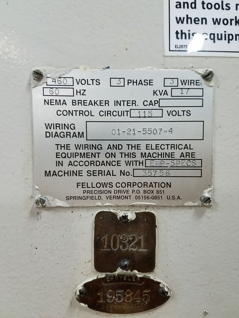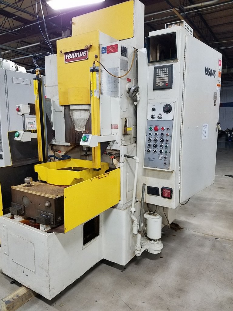 Fellows #10-4, Fanuc PowerMate D, 10" diameter, 4DP,hydraulic collet fixture,cutter guard, #29370 Manufacturer: Fellows Model: 10-4 Stock # 29370 Request a Quote 5 For Sale by Prestige Equipment Corp Surplus Record Dealer Since 1991 Contact Seller Melville, NY Paul Lashin 631-24...> Show Seller's Phone Number 631-249-5566 Let the seller know you found their listing on Surplus Record! View More Prestige Equipment Corp 's ListingsDescription CAPACITIES:Max Pitch Diameter, External: 10"Min Pitch Diameter, Internal: 10"Max Diametral Pitch, Spur: 4 DPMax Diametral Pitch, Helical: 5 DPMax Face Width: 4"Max Helix Angle w/ 5" Cutter: 45 DegMax O D of Fixture: 19"Max Stroke Length: 5"Max Strokes Per Minute: 800 SPMDistance - Tabletop to Spindle: 8"Feed Per Stroke: .001-.040Cutter Spindle Diameter: 3.543"Work Spindle Bore Diameter: 5.875"Work spindle bore depth: 10"Table Top to Cutter Spindle Underside,:- In Uppermost Position: 13.23"Worktable C L to Cutter Spindle CL: 9.06"Maximum OD of Fixture: 19"Rotary Feed Per 1" of Stroke: .001"-.012"Rotary Feed For Multi-Pass: .001-.020"Radial Feed Range Per Stroke: .0001"-.020"Max Radial Feed Per Minute: .12"Machine Dimensions: 93" x 103"Machine Height: 101"Approx. Machine Weight: 12,000 Lbs.Equipped With:GE Fanuc Powermate D 2-Axis CNC Control, 1999/2000 RetrofitHydraulically Operated Cutter Guard AssemblyHydraulically Operated Collet Fixture ClampingTailstock Pinion Support15 HP Main Drive MotorNOTE:The Fanuc Powermate control is a 2-axis control and the only changesyou need to make are for index or number of teeth in the part. this is doneby changing only (2) two change gears in the back of the machine fordifferent numbers of teeth. If you are running production then this shouldbe a non issue!!Features:GE Fanuc Powermate D 2-Axis CNC Control, 1999 RetrofitHydraulically Operated Collet Fixture15 HP Main Drive Motor4" Bore Workslide CylinderOutboard SupportTapered Riser Block, (2" Front, 1" Rear) Request More Information from SellerGet Your Price from Prestige Equipment Corp! "*" indicates required fieldsName*Company*Email* PhoneZip / Postal Code*QuestionMake an OfferRequests Send me a shipping quote I am interested in financingSend Copy Email me a confirmation of this inquiryBuyer Protection Use our partner Escrow.com to buy or sell equipment safelyBuyer Protection Send me info about buyer protectionThis field is hidden when viewing the formDealer Email Buyers Who Viewed This Listing Also Viewed … Fellows #10-4, vertical gear shaper, 13" dia., 4" stroke, 3" riser, hydraulic table clamping, serial #34475Category: Gear ShapersSeller: Piselli EnterprisesLocation: Statesville, NC Mfr: FellowsModel: 10-4Fellows model 10-4 vertical gear shaper 13" diameter 4" stroke, 3" riser, hyd table clamping, good condition gone through s/n 34475. Fellows #10-4, gear shaping machine, 10" pitch diameter, 4" face, 3.5" spindle diameter, 4" stroke, AB PLC-2Category: Gear ShapersSeller: Piselli EnterprisesLocation: Statesville, NC Mfr: FellowsModel: 10-4Fellows model 10-4 Gear shaping machine, 10" diameter, 4" stroke capacity, Cutter at top, A/B PLC 2 control, Plumbed & wired for a tailstock, new cutter spindle & Bushing inspect in NC.. Fellows #10-2, High Production Gear Shaper, 10" max. pitch diameter, 2" face width, 7.5 HP, 70-1260 RPM, 3PH, 1977Category: Gear ShapersSeller: Adams MachineryLocation: Libertyville, IL Mfr: FellowsModel: 10-2Year: 1977Maximum Pitch Diameter, External 10" Maximum Diametrical Pitch: Spur 4 Maximum Diametrical Pitch: Helical 5 Maximum Face Width 2" Distance Table Top to Shaper Spindle Casting 12" Maximum Helix Angle (using 5" Cutter) 45° Maximum OD of Fixture 19" Spindle Stroking Speeds (Variable) 70 - 1260 RPM Feed per ...more Fellows #36Z-13, gear shaper, spur guide, 22" riser, Trabon lube, coolant pump, 1975Category: Gear ShapersSeller: Gibbs Machinery CoLocation: Warren, MI Mfr: FellowsModel: 36Z-13Year: 19751975 FELLOWS 36Z-13, Spur Guide, 22" Riser, Trabon Lube, Coolant Pump, Change Gears, 2-Cut Cycle, 460/3/60 Motor & Controls, Guide. Spur, Maximum External Gear Diameter. 36", Maximum Internal Gear Diameter. 40", Diametral Pitch. 3, Riser. 22", Stroke. 13", Control Manufacturer. Conventional. Fellows #10-2, gear shaperCategory: Gear ShapersSeller: Lee Stevens Machinery Inc.Location: Whitmore Lake, MI Mfr: FellowsModel: 10-2Share × "*" indicates required fieldsYour Name*Your Email* Recipient's Email* Note to Recipient