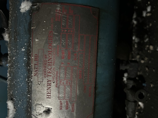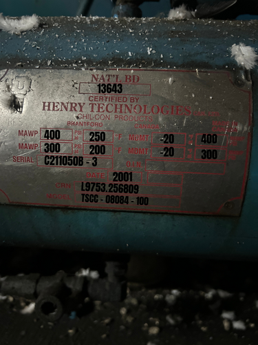 - Henry Technologies vessel — ASME certified, NB# 13643