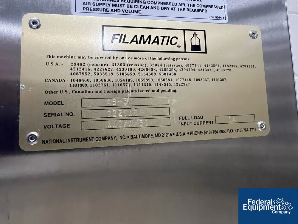 Used Filamatic AB-5 benchtop Single Piston Filler, 110 volt, serial# 022018.