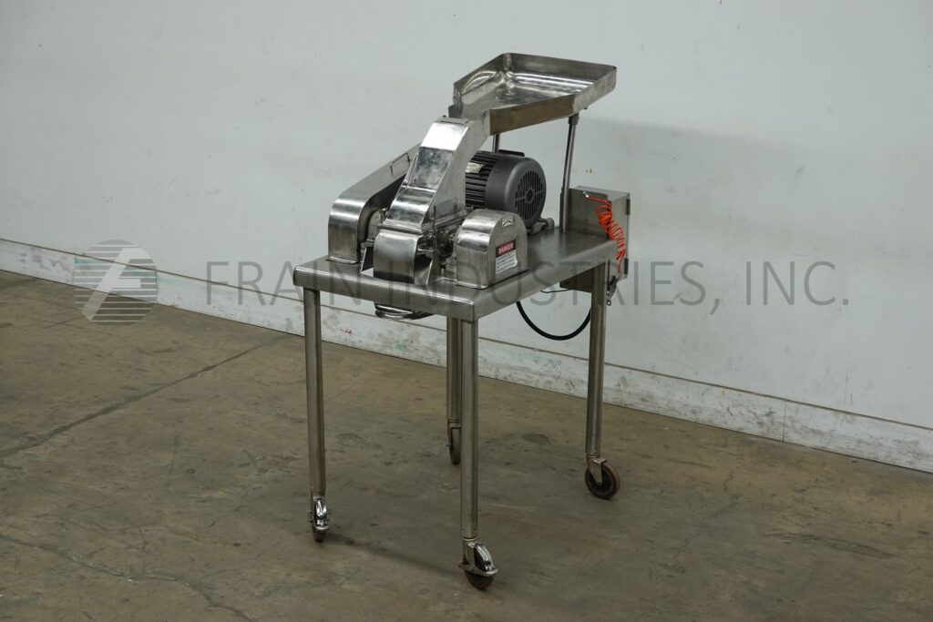 , used Fitzpatrick Fitzmill Mdl. DAS06 Hammer / Knife mill. Stainless Steel. Pan Feed. Driven by 7.5 HP, 230/460 volt, 1740 rpm Explosion Proof (XP) motor. On stainless steel cart with wheels. S/N 10321. Video of unit running available., FITZPATRICK Fitzmill DAS06, TYPE. HAMMER MILL, Material. 316 STAINLESS STEEL.