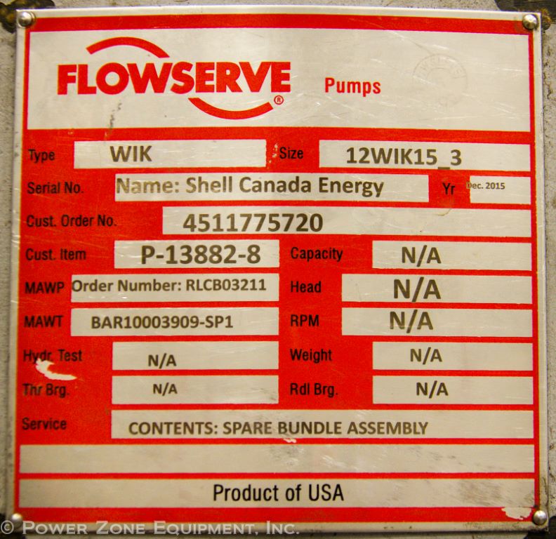 Flowserve #12WIK153, Boiler Feedwater Pump Spare Cartridge, 4151 GPM @ 6287' TDH, 5310 RPM, Never Used Manufacturer: Flowserve #12wik153 Stock # 58904 Request a Quote 10 For Sale by Power Zone Equipment Surplus Record Dealer Since 2000 Contact Seller Center, CO Drew/ Jay 719-75...> Show Seller's Phone Number 719-752-2159 Let the seller know you found their listing on Surplus Record! View More Power Zone Equipment 's ListingsDescriptionBrand/Model:Flowserve 12WIK153Description:Unused Surplus: 2015 Flowserve 12WIK153 Boiler Feedwater pump spare cartridge-HPApplications: Dewatering Pump, Oil & Gas Pipeline Pump, Water Pipeline Pump, Mine Dewatering Pump, Quarry Dewatering Pump, Midstream Pipeline Pump, Oil Pipeline Pump, Gas Pipeline Pump, Mainline Booster Pump, Water Supply PumpRPM:5310GPM:4151TDH:6287BPD:142320BPD:142320BPH:5930BPM:98.83L/SEC:261.89L/MIN:15713M3/SEC:0.2619M3/HR:942.79M3/DAY:22627 Request More Information from SellerGet Your Price from Power Zone Equipment! "*" indicates required fieldsName*Company*Email* PhoneZip / Postal Code*QuestionMake an OfferRequests Send me a shipping quote I am interested in financingSend Copy Email me a confirmation of this inquiryBuyer Protection Use our partner Escrow.com to buy or sell equipment safelyBuyer Protection Send me info about buyer protectionThis field is hidden when viewing the formDealer Email Buyers Who Viewed This Listing Also Viewed … Flowserve, Pump Lined Impeller, 7" outside dimension, 4 Vane, NEWCategory: Pump PartsSeller: Universal Industrial AssetsLocation: Gonzales, LA Mfr: Flowserve Flowserve #2423102940, 119" Pump Shaft Assembly, 3.526" diameter, 3.3090" diameterCategory: Pump PartsSeller: Lenmark IndustriesLocation: Langley, BC Mfr: Flowserve #2423102940SKU: 123968, Model: 2423102940, Condition: Used - Like New, Pump Part Type: Shaft, Dimensions: 13.00 (H) x 10.00 (W) x 127.00 (L) inches, Additional :, Shaft Diameter 1: 3.526", Shaft Diameter 2: 3.3090". Fanuc nv00023402a factory fanuc cnc part -" newCategory: Pump PartsSeller: iGAMLocation: Detroit, MI Mfr: Fanuc Nv00023402a Factory Fanuc Cnc Part -" NewFANUC NV00023402A factory CNC part available now. Assembled by leading manufacturer FANUC, this new pump part ensures optimal compatibility and performance in your CNC systems. Don't miss outenhance your equipment today!, Spec Sheet, FANUC NV00023402A, Dimensions. 13X6X4, Weight. 4 LBS. Flowtronex PSI Pumping Systems ZS-5A, Keypad Controller Digital Panel AssemblyCategory: Pump PartsSeller: OK Sales IncLocation: Burlington, NC Mfr: Flowtronex Psi Pumping Systems Zs-5aFlowtronex PSI Pumping Systems ZS-5A Keypad Controller Digital Panel Assembly, Condition Notes: Removed from working service, Used working condition. Item pictured is the exact item you will receive., Most Items ship same or next business day of payment received from North Carolina!, Next Day Air orders will ship same ...more Eaton/Cutler-Hammer #FD120-L1, Fire Pump Controller, 600 psi, 120-240 V, 300 hoursCategory: Pump PartsSeller: Diesel-Powered.comLocation: East Earl, PA Mfr: Eaton/cutler-Hammer #fd120-L1Stock#: IE00-497-FPC Voltage: 120-240 Volts Hours: 300 Hours Make: Eaton Cutler Hammer Model: FD120-L1 Serial: 16BK906D Length: 20" Width: 53" Height: 14" Weight: 150 lbs Condition: Good Used Condition.Share × "*" indicates required fieldsYour Name*Your Email* Recipient's Email* Note to Recipient