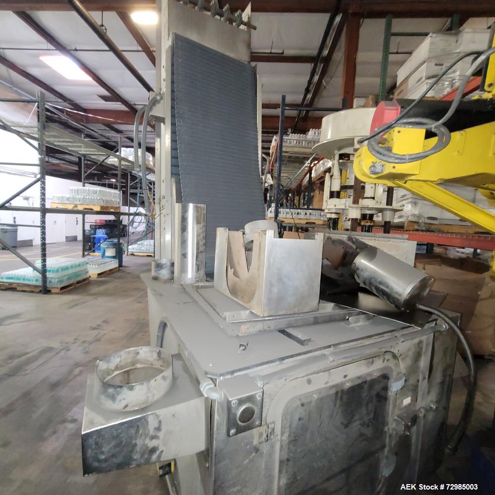 Used DT Kalish bottle orientor, type Kalisort, model 073, speeds up to 80 bottles/minute, integrated stainless steel bottle hopper with elevator, star wheel with bottle orientor, integrated bottle inverter with air cleaner, with change parts for 45cc, 60 cc and 85 cc, 120 volt with controls, serial#, built.