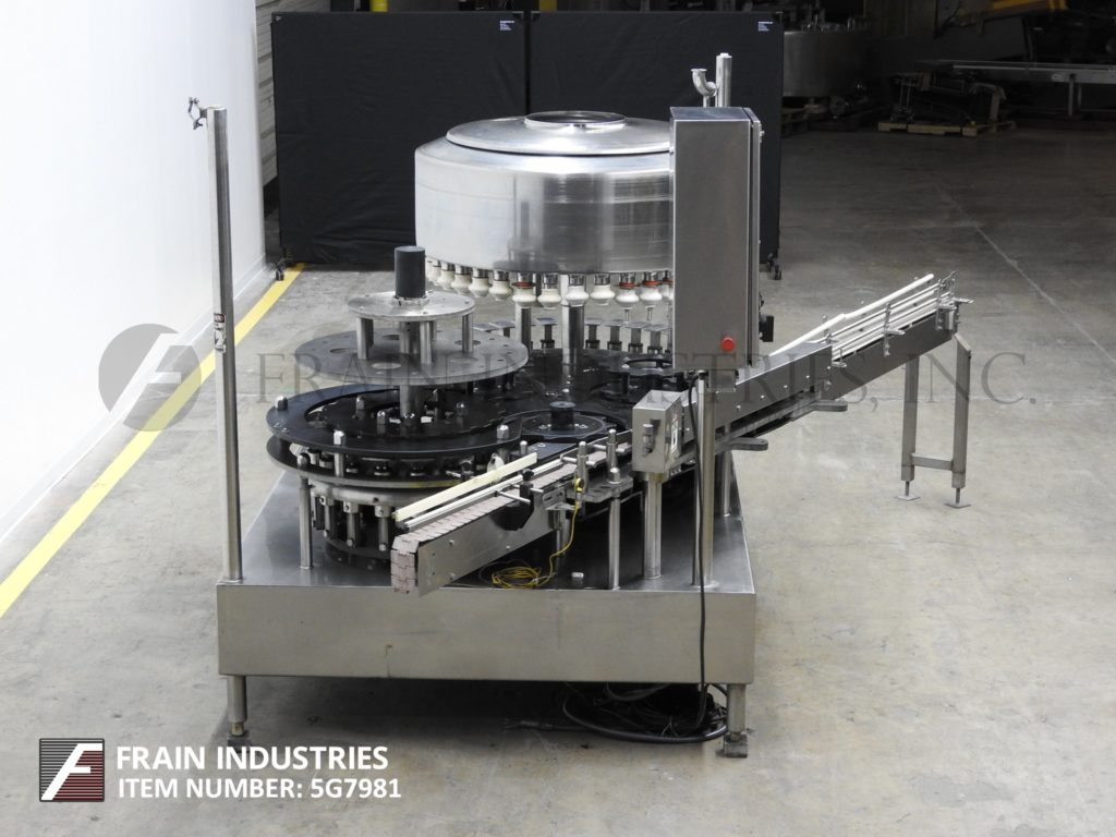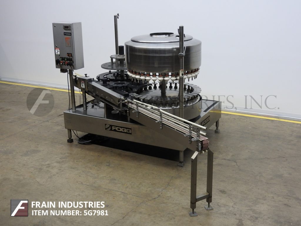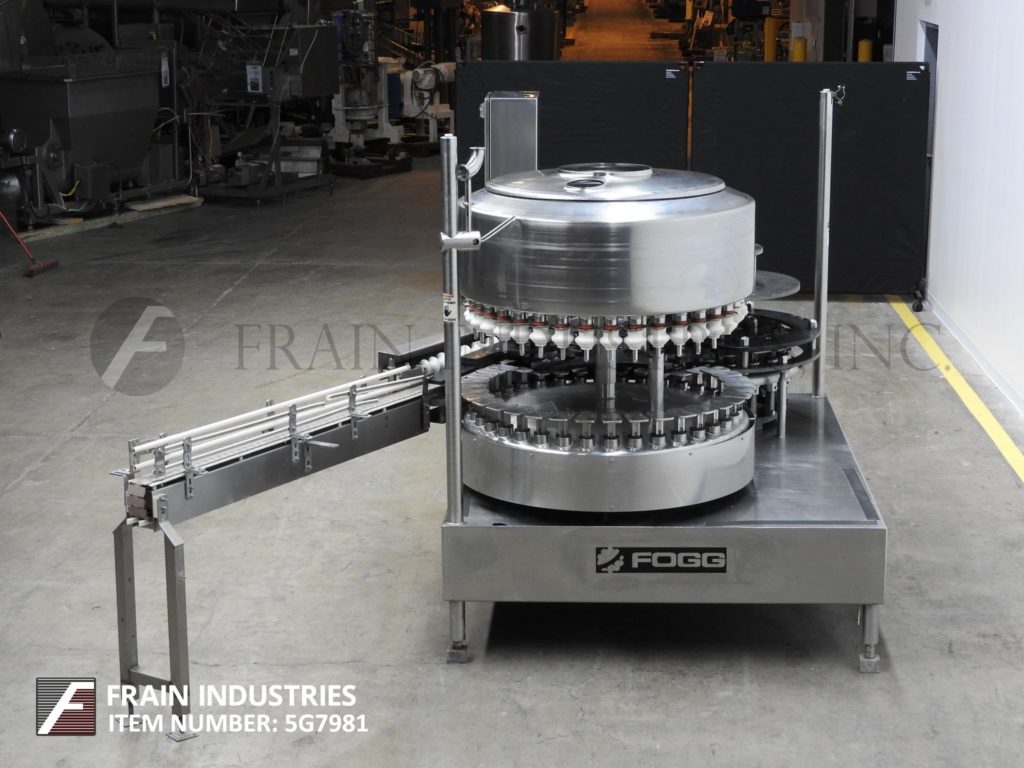 Fogg #FAA-3618, automatic, Stainless Steel, 36 head rotary, pressure gravity filler & 18 head rotary capper Manufacturer: Fogg Model: FAA-3618 Description: automatic Stock # 5G7981 Request a Quote 5 For Sale by Frain Industries Surplus Record Dealer Since 1991 Contact Seller Carol Stream, IL Katie Frain 630-62...> Show Seller's Phone Number 630-629-9900 Let the seller know you found their listing on Surplus Record! View More Frain Industries ' ListingsDescriptionFogg, Model FAA-3618, automatic, stainless steel, 36 head rotary, pressure gravity filler and 18 head rotary capper. Rated from 50 – 325 containers per minute – depending on materials and application. Equipped with a 3¼" wide container conveyor, worm screw to star wheel in feed and discharge, 48" turrett with (36) ¾" OD fill to level nozzles, set on 3¾" centers with 5" long x 3" wide container platforms, 48" OD product holding tank and 18 head rotary capper with (18) ____ style cap heads set on 4½" centers. Control panel with push button start / stop for filler and conveyor; push button jog, variable speed filler speed dial, on / off switches for cap sensor and bottle back up sensor, up / down switches for bowl and capper. Mounted on stainless steel base frame.OAD: 91"L x 86"W x 82"H Request More Information from SellerGet Your Price from Frain Industries! "*" indicates required fieldsName*Company*Email* PhoneZip / Postal Code*QuestionMake an OfferRequests Send me a shipping quote I am interested in financingSend Copy Email me a confirmation of this inquiryBuyer Protection Use our partner Escrow.com to buy or sell equipment safelyBuyer Protection Send me info about buyer protectionThis field is hidden when viewing the formDealer Email Buyers Who Viewed This Listing Also Viewed … FMC #, 6 Pocket Filler, 1.5 HP, 3-1/8" diameter Piston, 4" Stroke, 1-1/2" diameter Valve, 0.5 liters max fill volume, 35 liters Tank volume, 3-1/4" chainCategory: Filling Equipment (Fillers)Seller: GenemcoLocation: Hearne, TX Mfr: FmcM&S FMC 6 Pocket Filler. Fills cans size: 3-3/4 in. x 2 in. x 3-1/4 in. or cans #1 and #2. Piston diameter: 3-1/8 in. Stroke: 4 in. Valve diameter: 1-1/2 in. Centers between valves: 9-3/4 in. Maximum fill volume: 0.5 liters. Tank volume: 16 in. x 10 in. (35 liters). Transmission: 1.5 hp., 220 V. Pneumatic piston ...more GAI #3001-Top, 16 Valves Triblock Bottle Sparger, Filler, Corker with Cork Feed SystemCategory: Filling Equipment (Fillers)Seller: Libra Machinery & Equipment LLCLocation: Morris, CT Mfr: GaiModel: 3001 TOP Fluid Research #S-2000, Meter-Mix-Dispense System, 1:1 - 20" 1 mix ratios, 1-2000000 cps Viscosity, 0.026-99 cc/sec. flow rate, 0.25-10000 centers shot size, (2) 15 gallon tankCategory: Filling Equipment (Fillers)Seller: Machinery & Equipment CoLocation: Brisbane, CA Mfr: Fluid ResearchModel: S-2000Meter-mix-dispense system, manufactured by Fluid Research, Model S-2000. Rated for mix ratios ranging from 1:1 to 20:1, viscosity range of 1 to 2,000,000 cps, flow rate of 0.026cc to 98cc per second, shot size of 0.25cc to 10,000cc. Complete with PC controls, (2) progressive cavity pumps, (2) 15 gallon stainless steel ...more General Packaging #70A2C, double tube vertical form/fill/seal machine w/auge, 100 - 120 BPM, 2018Category: Filling Equipment (Fillers)Seller: Revelation MachineryLocation: Chicago, IL Mfr: General PackagingModel: 70A2CYear: 2018Make: Packaging, Model: 70A2C, Year: 2018, Machine Location: Upon Request, Packaging 70A2C Double Tube Vertical Form/Fill/Seal Machine with Auger Filler, 2018, – Designed for filling stick packs, – Previously running a powdered almond product in packet sizes.25 –.5 oz, – Auger system for ...moreJUST ADDED! Flexicon, rear post bulk bag filler w/ powered roller conveyorCategory: Filling Equipment (Fillers)Seller: JM Industrial LLCLocation: Millwood, WV Mfr: FlexiconUsed Flexicon Rear Post Bulk Bag Filler with powered roller conveyor, Flexicon bulk bag fillers (also known as FIBC, Big Bag and Jumbo Bag Fillers) range from basic stand-alone units to sophisticated systems to match the budget and capacity requirements of each customer's application. Each of these configurations ...moreShare × "*" indicates required fieldsYour Name*Your Email* Recipient's Email* Note to Recipient