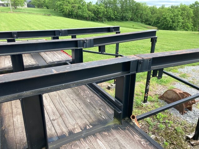 Mounted on a drop deck trailer. Everything folds up for transport.