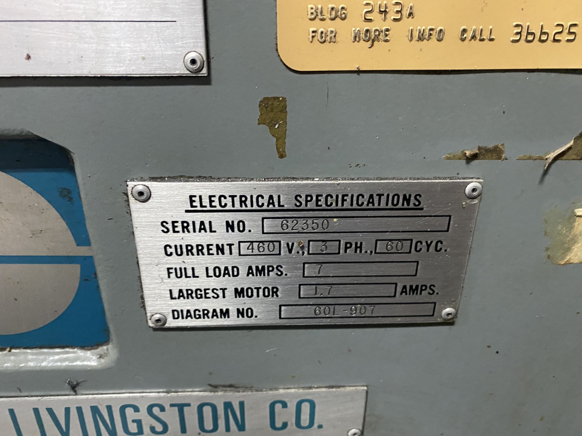 DME Ejector Pin Grinder & Cut Off Machine, PPC-750, Inventory # 9924-P, Model: PPC-750, S/N: 0183, Capacity:, Diameter: 1/32″ – 3/4″, Length: 1″ – 24″, Spindle Speed:, Cut Off Wheel: 11,200 RPM, Cup Wheel: 4,500 RPM, Motor: 1 HP / 240v / 3ph, Mechanical :, Dimensions: 36″ ...more