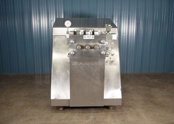 Gaulin #MC45 5TBS, Homogenizer, 2-stage, 5000 psi, 1000-2200 GPH, 2-1/8" plungers Manufacturer: Gaulin Model: MC45 5TBS Stock # D738459 Request a Quote 4 For Sale by Machinery & Equipment Co Surplus Record Dealer Since 1969 Contact Seller Brisbane, CA Dominic Piazza 415-64...> Show Seller's Phone Number 415-649-9611 Let the seller know you found their listing on Surplus Record! View More Machinery & Equipment Co 's ListingsDescription Gaulin homogenizer, Model MC45 5TBS. Stainless steel-clad, 2-stage HVA unit rated for 5,000 PSI with throughput between 1,000 to 2,200 GPH. Includes 2-1/8" plungers and tapered seat ball valve cylinder.Capacity: 1,000 to 2,200 GPHBasis: FOBMaximum Pressure: 5,000 PSI Request More Information from SellerGet Your Price from Machinery & Equipment Co! "*" indicates required fieldsName*Company*Email* PhoneZip / Postal Code*QuestionMake an OfferRequests Send me a shipping quote I am interested in financingSend Copy Email me a confirmation of this inquiryBuyer Protection Use our partner Escrow.com to buy or sell equipment safelyBuyer Protection Send me info about buyer protectionThis field is hidden when viewing the formDealer Email Buyers Who Viewed This Listing Also Viewed …JUST ADDED! Gaulin/Delaval #MC45 5TBS, high pressure homogenizer, 5000 psiCategory: HomogenizersSeller: Patriot Surplus EquipmentLocation: Houston, TX Mfr: GaulinModel: MC/DL45 Gaulin #MS18-2.5TBS 2200, single stage, Stainless Steel homogenizer, up to 1600 gallons per hour, 2200 psiCategory: HomogenizersSeller: Frain IndustriesLocation: Carol Stream, IL Mfr: GaulinModel: MS18-2.5TBSGaulin, Model MS18-2.5TBS 2200, single stage, stainless steel homogenizer. Rated for an output capacity of 10 to 1600 gallons per hour – depending on materials and application. Maximum operating pressure up to 2,200 psi. ball valve cylinders and standard style valve seat. Hydraulic homogenizing valve actuator ...more Gaulin #HO30, homogenizer, 2 stagesCategory: HomogenizersSeller: GenemcoLocation: Hearne, TX Mfr: GaulinModel: HO30Gaulin Homogenizer. Model: HO30. S/N: 57890. (3) 2-1/2 in. dia. plungers. Pressure and flowrate can be modified/adjusted to suit your needs. Currently setup as a pump, but homogenizing valve(s) can be added. Tapered seat poppet valve cylinders. Motor pulley diameter: 5 in. Gear pulley diameter: 15 in. dia. Pulley ...more GEA #Panther1500 Process Scale Homogenizer, Type Lab Panther Homogenizer 3006, max pressure 150 Mpa, rated flow of 50 dm3/h, Panther 1500Category: HomogenizersSeller: Aaron Equipment CoLocation: Schaumburg, IL Mfr: GeaModel: PANTHER1500used- gea panther1500 process scale homogenizer, type lab panther homogenizer 3006. maximum pressure 150 mpa; rated flow of 50 dm3/h; nanoemulsification production rate (10 mg servings/h) 42,000; 21,700 psi; 5.5 kw motor power; includes: spare parts package; 3a execution; heat exchanger; ika t-50 high shear mixer ...more APV Gaulin #30-30CD, HomogenizerCategory: HomogenizersSeller: Quantum TechnologyLocation: Shippensburg, PA Mfr: GaulinModel: 30-30CD*Local Pickup Does Not Include any Palletization* '*Handling times for freight shipments average 5 days, but may vary depending on size, weight, location, and current trucking conditions. This does not include shipping time.*, Please be aware that item s are provided as-is without any warranties or guarantees of ...moreShare × "*" indicates required fieldsYour Name*Your Email* Recipient's Email* Note to Recipient