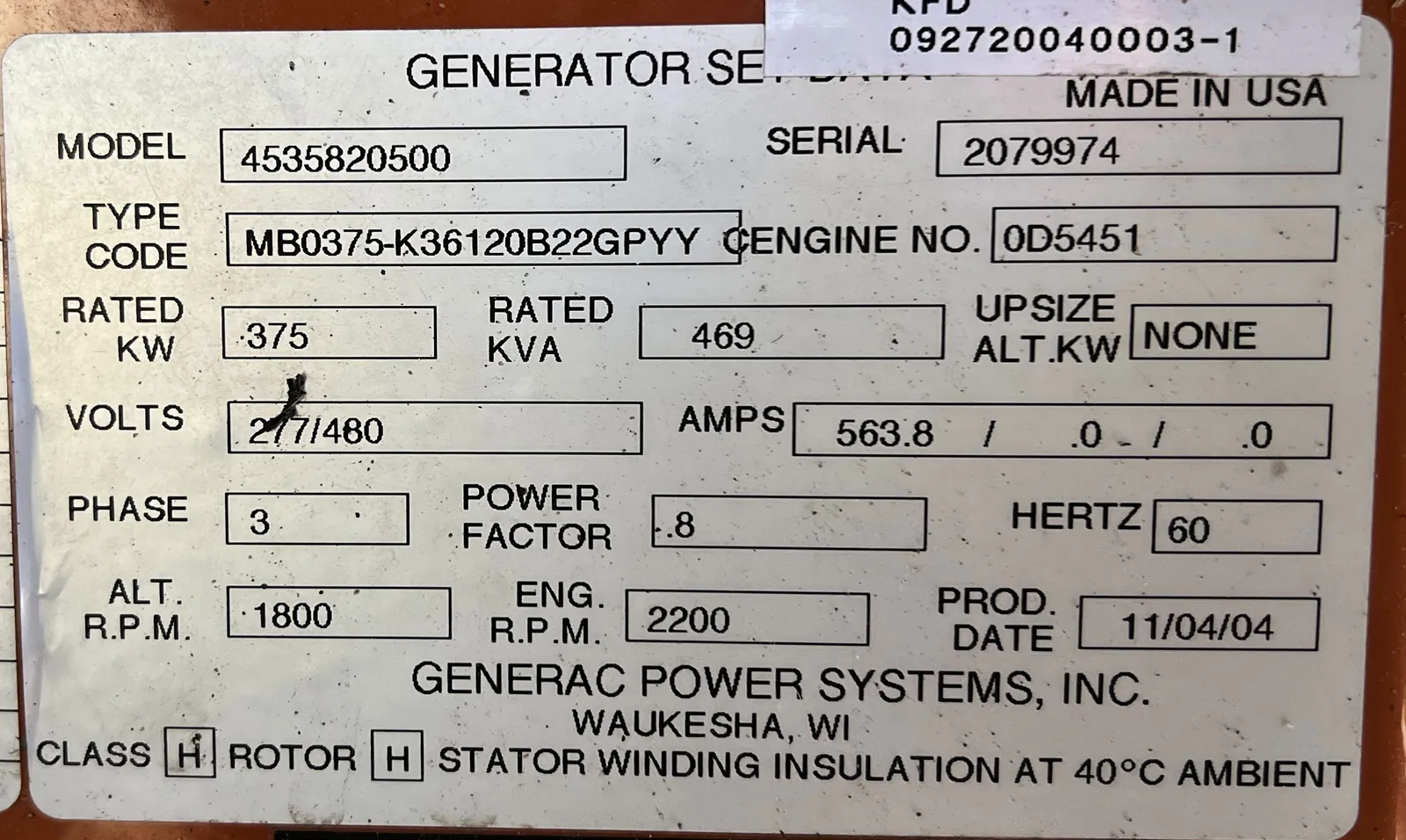 This Three-Phase generator runs on Diesel, has an output of 277/480v, and is currently located in Brighton, Colorado.
