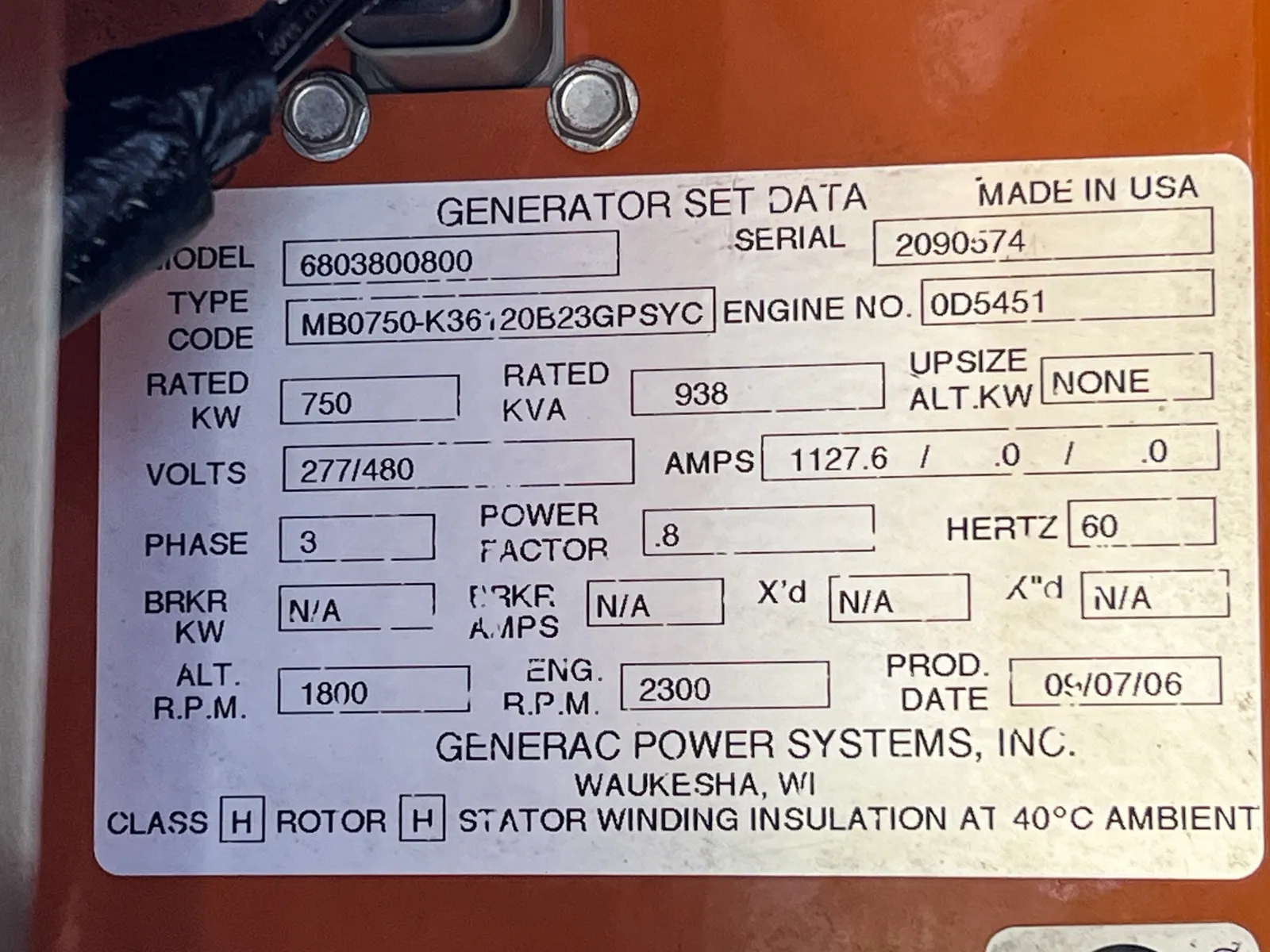 750 KW Generac #6803800800, standby diesel generator, 277/480 Volts, Mitsubishi motor, 2006, #089150 Manufacturer: Generac Model: 6803800800 Year: 2006 kW: 750 Volts: 277 - 480 Stock # 089150 Request a Quote 7 For Sale by Generator Source Surplus Record Dealer Since 2005 Contact Seller Brighton, CO Sales Dept 877-86...> Show Seller's Phone Number 877-866-6895 Let the seller know you found their listing on Surplus Record! View More Generator Source 's ListingsDescriptionThis Standby Three-Phase generator runs on Dual Fuel, has an output of 277/480v, and is currently located in Brighton, Colorado. Unit #089150 has been carefully updated to meet our quality standards and has passed our thorough 31 Point Quality Assurance Certification.Model: 6D24Capacity: 750kWAmps: 1127.6Volts: 277/480vPhase: Three-PhaseFuel Type: Dual Fuel Request More Information from SellerGet Your Price from Generator Source! "*" indicates required fieldsName*Company*Email* PhoneZip / Postal Code*QuestionMake an OfferRequests Send me a shipping quote I am interested in financingSend Copy Email me a confirmation of this inquiryBuyer Protection Use our partner Escrow.com to buy or sell equipment safelyBuyer Protection Send me info about buyer protectionThis field is hidden when viewing the formDealer Email Buyers Who Viewed This Listing Also Viewed …JUST ADDED! 750 KW Cummins #DQCB, diesel generator set, 277/480 Volts, 1220 HP @ 1800 RPM, QSK23-G7 NR2 engine, Tier 2, weatherproof enclosure, 978 gal. fuel tank,Category: Diesel GeneratorsSeller: Worldwide Power ProductsLocation: Houston, TX Mfr: CumminsModel: DQCBYear: 2011Engine Information Engine Manufacturer:Cummins Engine Model:QSK23-G7 NR2 Engine S/N:00323225 Engine RPM:1800 Engine HP:1220 Cooling Method:Radiator Emissions Rating:Tier 2 Generator End Information kW Rating:750 kVa Rating:938 Rating Type:Standby Voltage:277/480 Power Factor:0.80 Frequency:60 Generator RPM:1800 ...moreJUST ADDED! 750 KW MTU/Detroit #750DSEB, Diesel Generator, 16V 2000 Series Engine, 1800 RPM, 277/480 Volts, 165 hours, 2005Category: Diesel GeneratorsSeller: Diesel-Powered.comLocation: East Earl, PA Mfr: Ddc Diesel EngineModel: R1237M36Year: 2005Stock#: IE750-136-MT Fuel: Diesel Year: 2005 Voltage: 277/480 Volts Hours: 165 Hours Phase: 1/3 Phase Make: MTU Model: 750DSEB Serial: 2047129 Hertz: 60 Hz Wires: 12 Lead Kilo Watts: 750 kW Mounted: Skid Mounted Lead: Reconnectable Length: 173" Width: 66" Height: 96" Weight: 14000 lbs Condition: Well ...moreJUST ADDED! 750 KW Cummins #DQCB, diesel generator set, 277/480 Volts, 432 hours, 1220 HP @ 1800 RPM, QSK23-G7 NR2 engine, EPA Tier 2, sound attenuated enclosure, 1464 gal. sub-base fuel tank, 2015Category: Diesel GeneratorsSeller: Central States Diesel Generators LLCLocation: Waukesha, WI Mfr: CumminsModel: DQCBYear: 2015Cummins 750 kW standby (680 kW prime) diesel generator set, model DQCB, SN-B150797060. Cummins QSK23-G7 engine rated 1220 HP at 1800 RPM, SN-85000829, EPA Tier 2 emissions. 3/60/277/480V, 4 wire non-reconnectable to other voltages. Oversized 800 kW rated generator end. 1200 Amp main-line circuit breaker. PMG permanent ...more 750 KW Cummins #DQCB, diesel generator set, 277/480 Volts, 1220 HP @ 1800 RPM, QSK23-G7 engine, EPA Tier 2, sound attenuated enclosure, 1500 gal. sub-base fuel tank, 2025Category: Diesel GeneratorsSeller: Midwest Engines & GeneratorsLocation: Edinburgh, IN Mfr: CumminsModel: DQCBYear: 2025This new 2025 Cummins DQCB diesel generator set is a high-capacity industrial standby power system engineered for commercial, municipal, and mission-critical emergency applications. The unit is rated 750 kW standby and 680 kW prime at 60 Hz, operating at 1,800 RPM, and produces 277/480V, three-phase power. It is ...more 750 KW Cummins #QST30-G10NRI, diesel generator, weatherproof enclosure, 277/480 Volts, 1059 hours, 2004Category: Diesel GeneratorsSeller: Generator SourceLocation: Brighton, CO Mfr: CumminsModel: QST30-G10NRIYear: 2004Used Cummins 750kW Diesel generator. This Standby power unit s a Weatherproof enclosure and has approximately 1059 hours of use. It provides Three-Phase power at 277/480v and is ready to ship from our Brighton, Colorado facility., Model: QST30-G1-NRI, Capacity: 1500, Amps: 1200, Volts: 277/480v, Phase: Three-Phase ...moreShare × "*" indicates required fieldsYour Name*Your Email* Recipient's Email* Note to Recipient