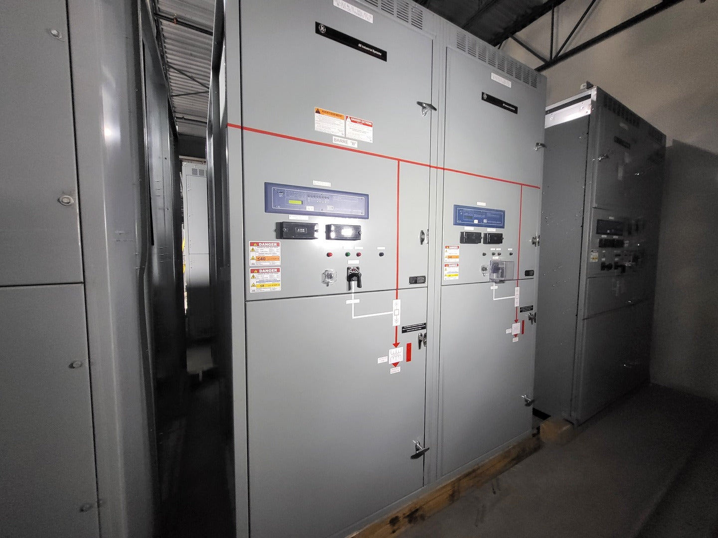 General Electric, 25 kV Medium Voltage Metal-Clad Switchgear, 1200 amp, 3P, (2) panel mount distribution protection relay, (2) vacuum circuit breakers, 3PH