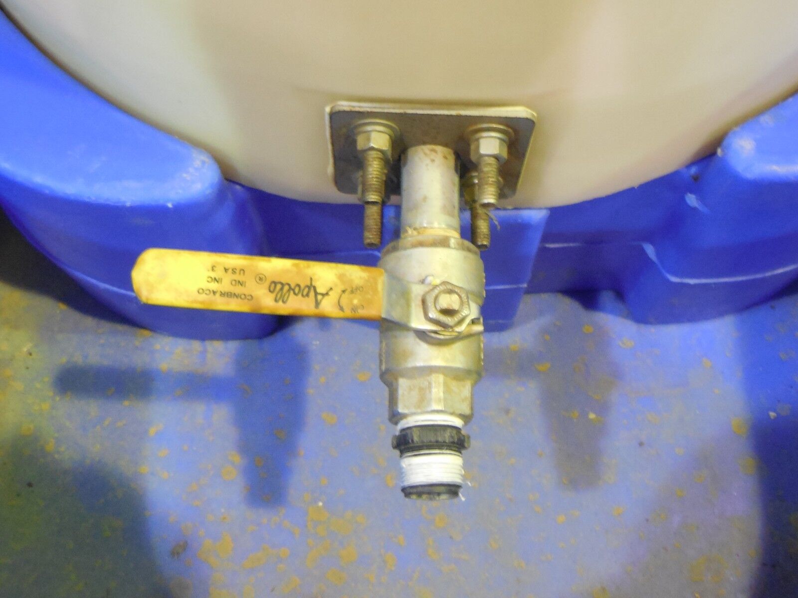 Freeport Welding 85-Gallon Titanium High Pressure Vessel, rated for 420 PSI at 200 degrees Fahrenheit. Vessel measures 20" diameter X 60" straight side with ASME dish bottom, leading to 6" diameter center bottom outlet, tapered to 2" diameter flanged discharge. Includes heavy-duty bolted top. Mounted on 54" high mild ...more
