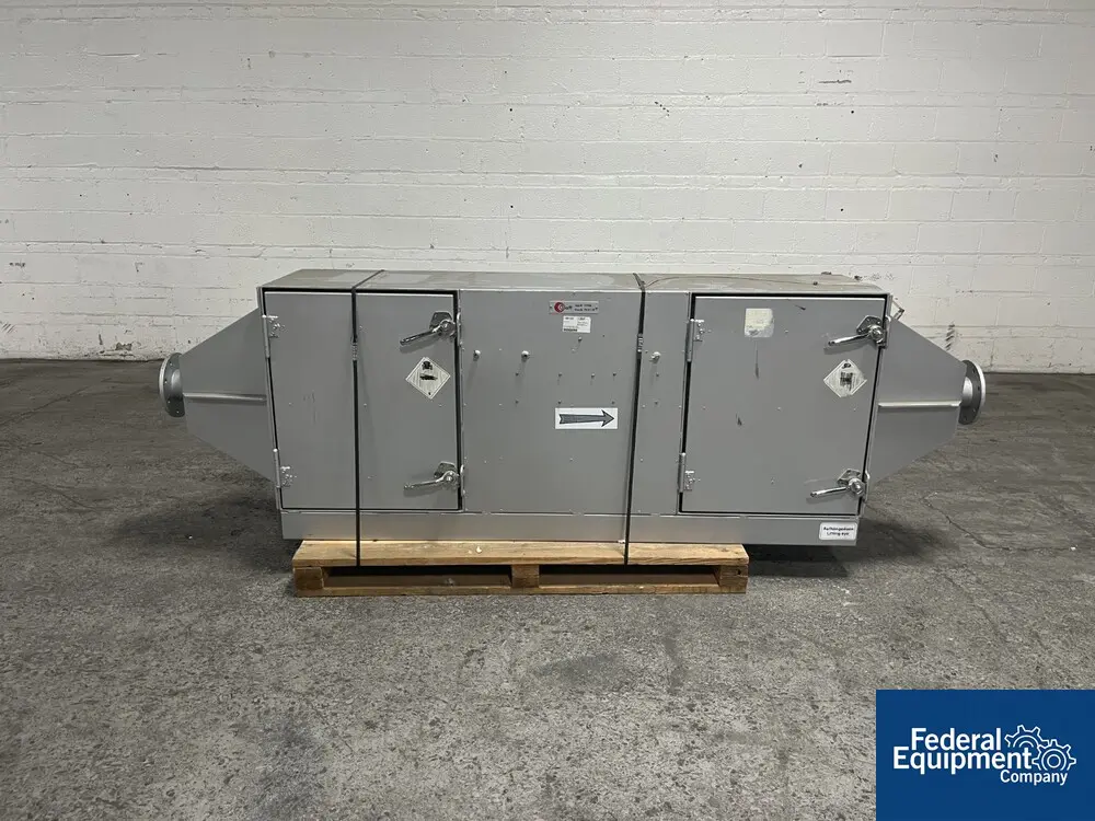 Used Glatt air filter unit, App Nr. G7896, stainless steel construction, with provisions for intake and outlet filter (no filters), 75" long x 16" wide x 28" high filter box, 4" inlet and outlet, serial# P6741-20.