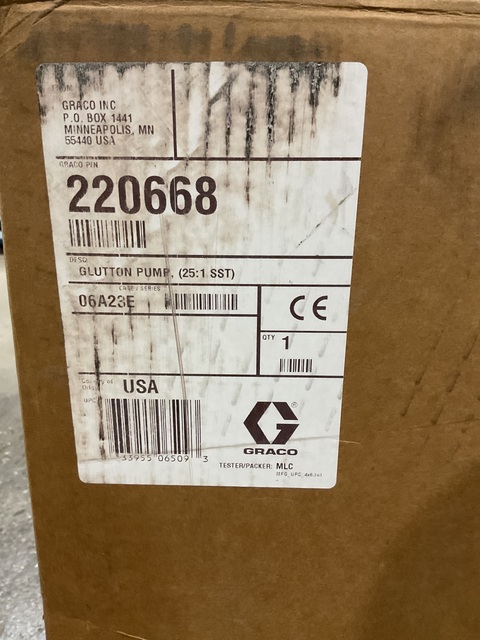 The GRACO 25:1 Bellows Pump, model 220668, is a used industrial-grade pump engineered for high-pressure fluid transfer in demanding applications. Constructed with stainless steel (SST) for excellent corrosion resistance and equipped with UHMWPE (Ultra-High Molecular Weight Polyethylene) seals, this pump offers long-lasting performance and chemical compatibility across a wide range of fluids. Designed for bulk material transfer, this 25:1 ratio bellows pump is ideal for high-viscosity materials and environments requiring consistent flow under pressure.