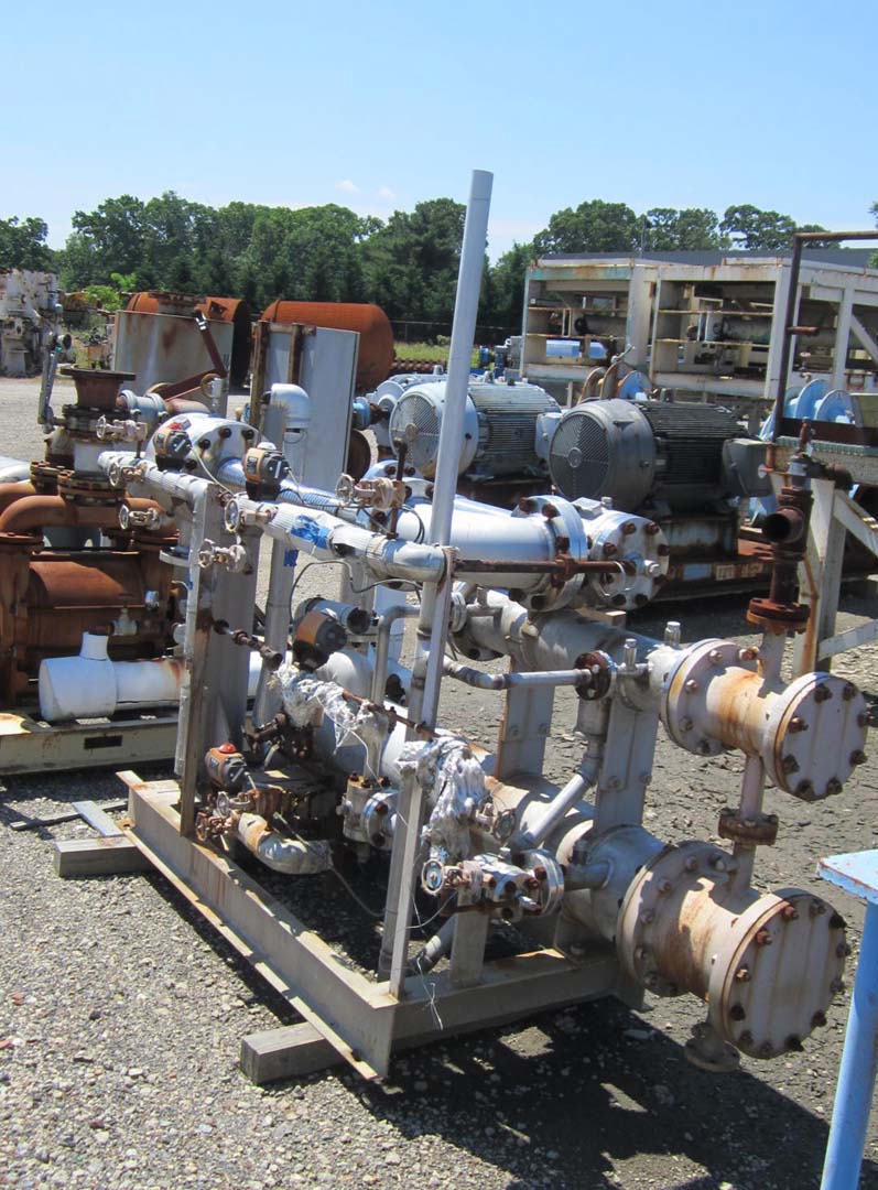 Used Graham 3-stage ejector vacuum system. With (1) 10 X 6 inner condenser, stainless steel shell rated full vacuum/150 psi @ 400F, tubes 150 psi at 400F. (1) 6 X 3 after-condenser stainless steel shell rated full vacuum/150 psi @ 400F. Valves. Carbon steel bonnets. Mounted on unitized base.