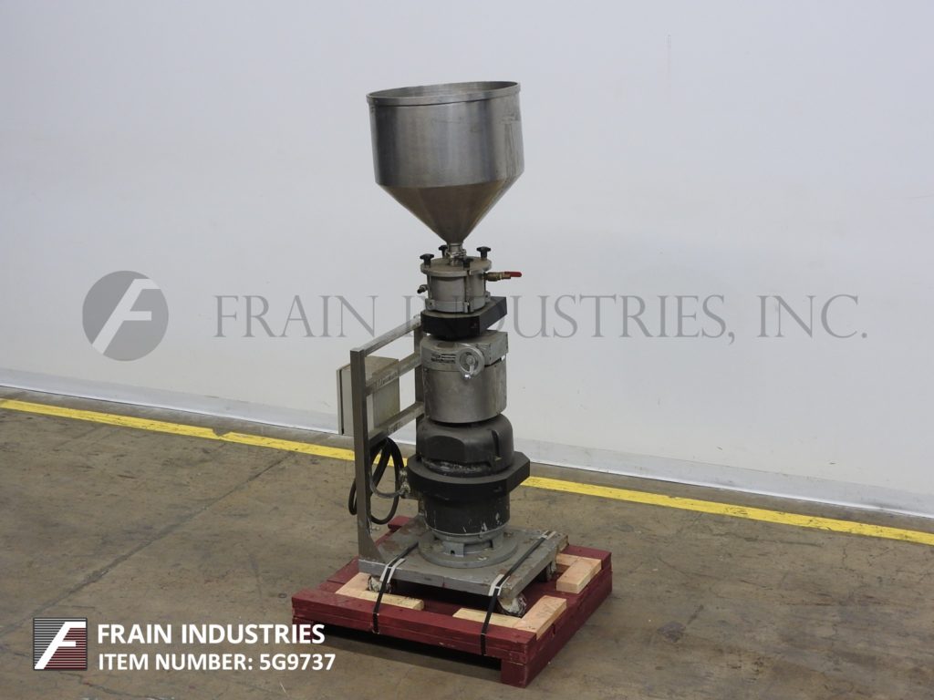 Charlotte stainless steel colloid mill, model SD20 is capable of rates from 300 to 600 gallons per hour. Depends on the viscosity. Mill is jacketed for heating or cooling. 2" diameter tri-clamp sanitary inlet/outlet. Sealing on the housing is bolted, shaft takes oil seal. Serial number 2734. Includes 25 HP, 230/460V ...more