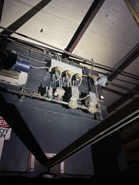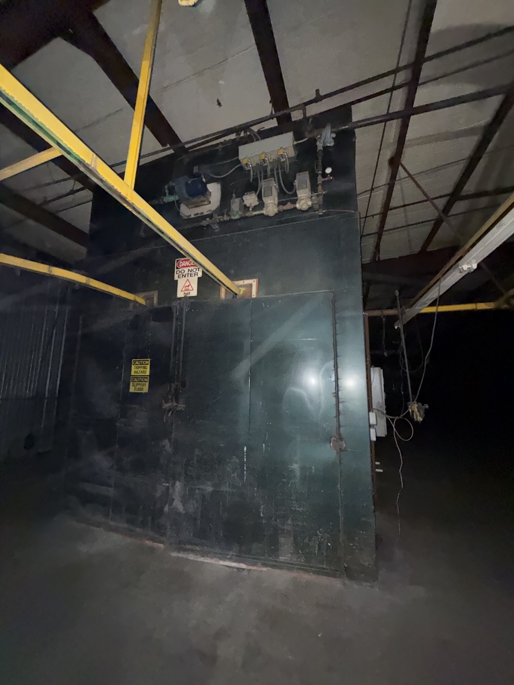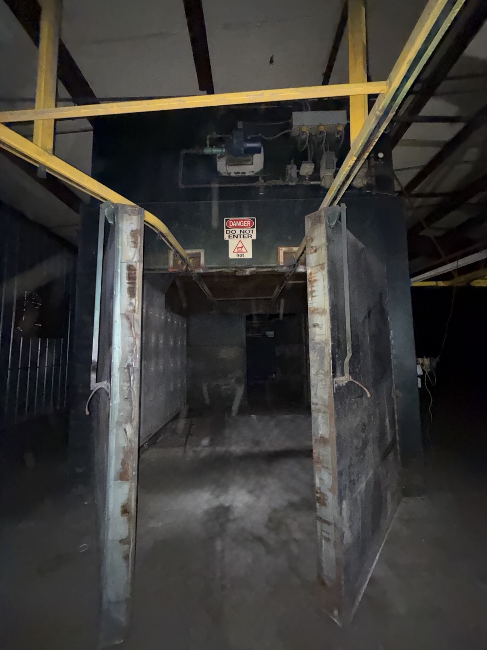 used- wisconsin oven corporation batch oven, batch-7/26/10-g/ep. 350 degree f maximum temperature; propane fueled; 1-5 psig pressure; 2,000,000 btu/hour. 3/60/480v. approximate 29' length. previously used for post curing composite pipes. cooling unit was removed.