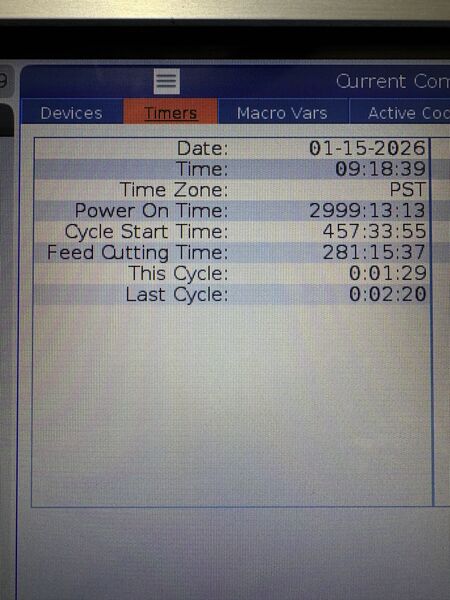 Power On Time 5550, Spindle On Time 2746.14, Servo On Time 4126.14.
