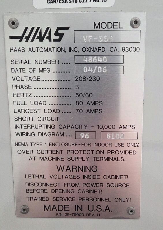 Haas #VF-3SS, 4-Axis precision CNC vertical machining center, 40" X, 20" Y, 25" Z, 12000 RPM, 24 side mount tool changer, programmable coolant, 2006 Manufacturer: Haas Model: VF-3SS Year: 2006 Automatic Tool Changer: 24 Longitudinal" X: 40.0 Cross" Y: 20.0 Vertical" Z: 25.0 RPM: 12000 Stock # 13589 Request a Quote 10 Play VideoFor Sale by CNC Exchange div. Gray Machinery Co. Surplus Record Dealer Since 1966 Contact Seller Prospect Heights, IL Glenn Gray 847-53...> Show Seller's Phone Number 847-537-7700 Let the seller know you found their listing on Surplus Record! View More CNC Exchange div. Gray Machinery Co. 's ListingsDescription HAAS MODEL VF-3SS 4-AXIS PRECISION CNC VERTICAL MACHINING, 12,000 rpm,24 position side mount tool changer, 16MB, 4th Axis ready, programable coolant2006Travels:Maximum X axis 40"Maximum Y axis 20"Maximum Z axis 25"Spindle nose to table (min.) 4"Spindle nose to table (max.) 29"Standard table:Length 48"Width 18"Max. weight on table 1,750 lbT-slot width 0.625"T-slot center distance 3.15"Number of T-slots 5Spindle:Taper size #40 TaperSpindle max speed 12,000 RPMDrive system Inline direct driveMax. torque standard 75 ft-lb @ 2,100 RPMSpindle motor max. rating 30 HPBearing lubrication Air/Oil InjectionCooling Liquid cooledAxis Motors:Max. thrust rating X 3,085 LBMax. thrust rating Y 3,085 LBMax. thrust rating Z 3,923 LBFeedrates:Rapids on X axis 1,400 IPMRapids on Y axis 1,400 IPMRapids on Z axis 1,400 IPMMax. cutting 833 IPMCont. on Page 2Tool changer:Capacity standard 24 + 1Tool type / taper CT 40Max. tool diameter std (full) 3.0"Max. tool weight 12 LBChanger type standard (optional) SMTCTool-to-Tool (avg) 1.6 Sec.Chip-to-Chip (avg) 2.2 Sec.Accuracy (Single Axis):Positioning (+/-) 0.0002"Repeatability (+/-) 0.0001"GENERALDoor opening width 48.5"Machine weight 12,500 LBAir required 4 CFM @ 100 psiPower required 28 KVANote: New Replacement $150,000 Request More Information from SellerGet Your Price from CNC Exchange div. Gray Machinery Co.! "*" indicates required fieldsName*Company*Email* PhoneZip / Postal Code*QuestionMake an OfferRequests Send me a shipping quote I am interested in financingSend Copy Email me a confirmation of this inquiryBuyer Protection Use our partner Escrow.com to buy or sell equipment safelyBuyer Protection Send me info about buyer protectionThis field is hidden when viewing the formDealer Email Buyers Who Viewed This Listing Also Viewed …JUST ADDED! Haas #VF-3SS, CNC vertical machining center, 40" X, 20" Y, 25" Z, 40 side mount tool changer, 12000 RPM, thru spindle coolant, programmable coolant nozzle, 2005Category: Vertical CNC Machining CentersSeller: Premier Equipment IncLocation: Altamonte Springs, FL Mfr: HaasModel: VF-3SSYear: 2005Haas VF3SS CNC MillCNC Vertical Machining Center (subject to buyer verification):Table Size48″ x 18”Maximum Weight on Table1,750 lbsX Axis Travel40”Y Axis Travel20″Z Axis Travel25″Automatic Tool ChangerSide Mount 40 ATCSpindle Taper40 TaperMax Tool Diameter3.0”Tool to Tool / Chip to ...moreJUST ADDED! Haas #VF-3SS, CNC vertical machining center with TRT 210, 40" X, 20" Y, 25" Z, 12000 RPM, Cat 40, 30+1 side mount tool changer, 2023Category: Vertical CNC Machining CentersSeller: Equipment HubLocation: Stone Mountain, GA Mfr: HaasModel: VF-3SSYear: 2023Stock #: 111260006, Location: GA, Brand: Haas, Model: VF-3SS, Year: 2023, Loading Fee: Rigging Required, X Axis Travel: 40", Y Axis Travel: 20", Z Axis Travel: 25", Rapid Traverse (X,Y,Z): 1,400 IPM, Max Table Load: 1,750 Lbs, Spindle Motor: 30 HP, Spindle Speed: 12,000 RPM, Spindle Taper: CAT 40, Tool ...moreJUST ADDED! Haas #VF-3SS, CNC vertical machining center, 40" X, 20" Y, 25" Z, 30 HP, 12000 RPM, 30 automatic tool changer, chip augerCategory: Vertical CNC Machining CentersSeller: Revelation MachineryLocation: Chicago, IL Mfr: HaasModel: VF-3SSYear: 2022Make: Haas, Model: VF-3SS, Year: 2022, Machine Location: Illinois, TABLE SIZE: 48″ X 18″, X AXIS TRAVEL: 40″, Y AXIS TRAVEL: 20″, Z AXIS TRAVEL: 25″, SPINDLE MOTOR: 30 HP, SPINDLE SPEED: 12,000 RPM, SPINDLE TAPER: Cat-40, TOOL CHANGER: 30 ATC Dual Arm, DIMENSIONS: 118″ X 96″ X ...moreJUST ADDED! Haas #VF-3SS, CNC vertical machining center, 2021Category: Vertical CNC Machining CentersSeller: Bay Area CNC MachineryLocation: Walnut Creek, CA Mfr: HaasModel: VF-3SSYear: 2021Manufacturer Haas, Model VF-3SS, Year 2021, Condition Used.JUST ADDED! Haas #VF-3SS, vertical machining center, 5-axis Trunnion, 40" X, 20" Y, 25" Z, 12000 RPM, 30 HP, 24 automatic tool changer, 300 psi thru spindle coolant, probe, 5539 spindle hours, AS IS, 2011Category: Vertical CNC Machining CentersSeller: Clark Machinery Sales LLCLocation: Hunt Valley, MD Mfr: HaasModel: VF-3SSYear: 20112011 HAAS VF-3SS, TABLE LENGTH. 48", TABLE WIDTH. 18", X-AXIS TRAVEL. 40", Y-AXIS TRAVEL. 20", Z-AXIS TRAVEL. 25", SPINDLE SPEED. 12,000 RPM, SPINDLE MOTOR. 30 hp, SPINDLE TAPER. CAT 40, TOOL CAPACITY (ATC). 24, RAPID TRAVERSE - X AXIS. 1,400 in/min., RAPID TRAVERSE - Y AXIS. 1,400 in/min., RAPID TRAVERSE - Z-AXIS. ...moreShare × "*" indicates required fieldsYour Name*Your Email* Recipient's Email* Note to Recipient