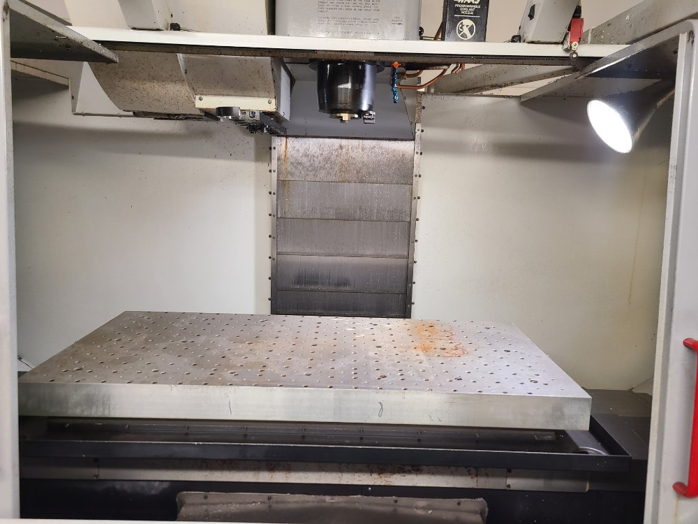 Used Vertical Machining Center s a 50"x26"x25" travel, 20 hp power, and 7,500 RPM spindle. Includes a 20-tool ATC and CAT 40 taper. Table dimensions: 52"x23". Comes tools., 2000 HAAS VF-5, X. 50", Y. 26", Z. 25", Power. 20 hp, RPM. 7,500 RPM, # ATC. 20, Taper. CAT 40, Table-W. 23", Table-L. 52", # Axis. 3, Control. ...more
