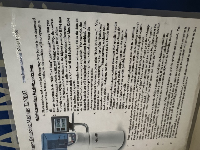 100 lb. Balance Research #RS3, 26" dia, drill press, 3HP, new electric, guaranteed w/training
