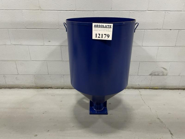 one(1) used Plastic Feed Hopper Made by Protectoplas Co. 22.75" diameter x 29" tall. Open top, cone bottom 2.75" center bottom outlet. Outlet has a 7.5" four bolt flange.