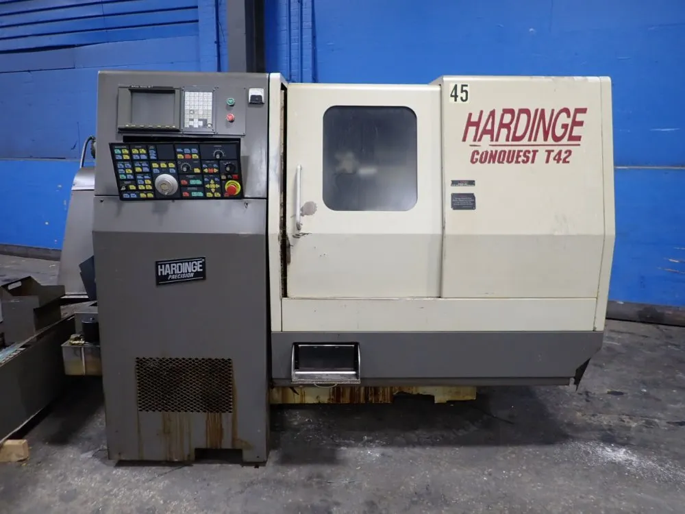 Hardinge #SGSS-42, CNC Lathe, w/Chip Conveyor, GE Fanuc Series 18-T Control, 31 kW, 230 V, Multiposition Tool Changer Manufacturer: Hardinge Model: SGSS-42 Stock # 1225-078-0004 Price: $3,399 USD Request Info 10 For Sale by HGR24 Surplus Record Dealer Since 2012 Contact Seller Euclid, OH Sales Dept. 216-48...> Show Seller's Phone Number 216-485-2976 Let the seller know you found their listing on Surplus Record! View More HGR24 's ListingsDescriptionInventory No.1225-078-0004ManufacturerHardingeModel No.SGSS-42NameCNC LatheArrival Date12-16-2025Dimensions L x W x H (inches)UnavailableElectrical3/50/60/115Weight (lb.)10840CategoryCNCConditionUsedAvailable Quantity1Serial No.SG-148Item DetailsW/ge Fanuc Series 18-t Control, Multiposition Tool Changer, Chip Conveyor, 11 Kw, (10220#) 112x75x73, (620#) 103x34x60, *contains 2 Pieces Request More Information from Seller See this CNC Lathes and Turning Centers listing on HGR24's websiteInquire Further with HGR24! "*" indicates required fieldsName*Company*Email* PhoneZip / Postal Code*QuestionMake an OfferRequests Send me a shipping quote I am interested in financingSend Copy Email me a confirmation of this inquiryBuyer Protection Use our partner Escrow.com to buy or sell equipment safelyBuyer Protection Send me info about buyer protectionThis field is hidden when viewing the formDealer Email Buyers Who Viewed This Listing Also Viewed … Hardinge #SG-42, CNC Lathe, 1.5" bar capacity, 3-Axis, 15 HP, 5000 RPM, GE Fanuc 18-TCategory: CNC Lathes and Turning CentersSeller: Cincinnati Rpt IncLocation: Lincoln Park, MI Mfr: HardingeModel: SG-42Year: 1993 Hardinge #SR200MSY, multi-axis CNC turning center, GE Fanuc i Series SR, 20.4" swing, 2.5" bar, 2008Category: CNC Lathes and Turning CentersSeller: Premier Equipment IncLocation: Altamonte Springs, FL Mfr: HardingeModel: SR200MSYYear: 2008Hardinge SR200MSY Multi-Axis CNC Turning Center (subject to buyer verification):SWING DIAMETER OVER WAY COVER ……. 20.44″TURNING DIAMETER MAX ……………. 12.28″MAX. TURNING LENGTH ……………. 20.1″X-AXIS TRAVEL ...more Hardinge #Quest-51SP, CNC Lathe, 7.45" X, 24" Z, 12" max. turning diameter, 24" max. turning length, 6" chuck, 2" bar, 20 HP, 8000 RPM, 12-station turret, tailstock, 2001Category: CNC Lathes and Turning CentersSeller: Revelation MachineryLocation: Chicago, IL Mfr: HardingeModel: QUEST 51SPYear: 2001Make: Hardinge, Model: Quest 51SP, Year: 2001, Machine Location: Michigan, Max. Turning Diameter: 12″, Max. Turning Length: 24″, Bar Capacity: 2″, Chuck Size: 6″, X-Axis Travels: 7.45″, Z-Axis Travels: 24″, C-Axis: 360,000 POS, Max. X-Axis Traverse Rate: 1100 IPM, Max. Z-Axis ...more Hardinge #Super-Precision-T-51, 2-Axis CNC Lathe, 22.47" machining length, 12.35" turning diameter, 8" chuck, 2" bar, 20 HP, 5000 RPM, sub spindle, 2014Category: CNC Lathes and Turning CentersSeller: Toolquip IncLocation: Lebanon, OH Mfr: HardingeModel: SUPER PRECISION T-51Year: 20142014 Hardinge Super Precision T-51 CNC Lathe. Used condition, 2-axis, 8" chuck, 2" bar capacity, 20 hp power, 5,000 RPM max. Machining length 22.47", turning dia 12.35". Includes sub spindle, excludes tailstock and live tooling., 2014 HARDINGE SUPER PRECISION T-51, Machining Length. 22.47", # Axis. 2, Chuck Size. 8" ...more Hardinge #OT-CNC, 2" Axis CNC Turning Center, 6" x 12" Plate Capacity, 300 IPM, Omniturn ControlCategory: CNC Lathes and Turning CentersSeller: Machinery Values IncLocation: Harrison, NJ Mfr: HardingeModel: OT-CNCOMNITURN/HARDINGE GANG TYPE CNC LATHE SLIDE TRAVELS:… X=10.5" Z=5.5" (8.5" Opt.)TOOLING PLATE SIZE:… 6" X 12"RAPID TRAVEL:… 300 IPMAPPROX. WEIGHT:… 3,200 LBS. : - 2-AXIS OMNITURN CNC CONTROL - 4" NORTHFIELD AIR CHUCK VIDEO LINK: https://youtu.be/wMunDaUO7zM.Share × "*" indicates required fieldsYour Name*Your Email* Recipient's Email* Note to Recipient