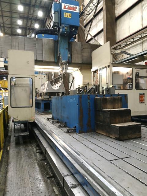 2017 SNK RB-7VM Gantry Mill, double column bridge with five-face machining. s a 314.9" x 137.8" table, 324.8" X-axis travel, FANUC 31I-B CNC, auto tool length measuring, and a 60-tool auto changer. special five-face software., 2017 SNK RB 7VM, Number Of Tables / Pallets. 1, Table Size - L. 314.9", Table Size - W. ...more