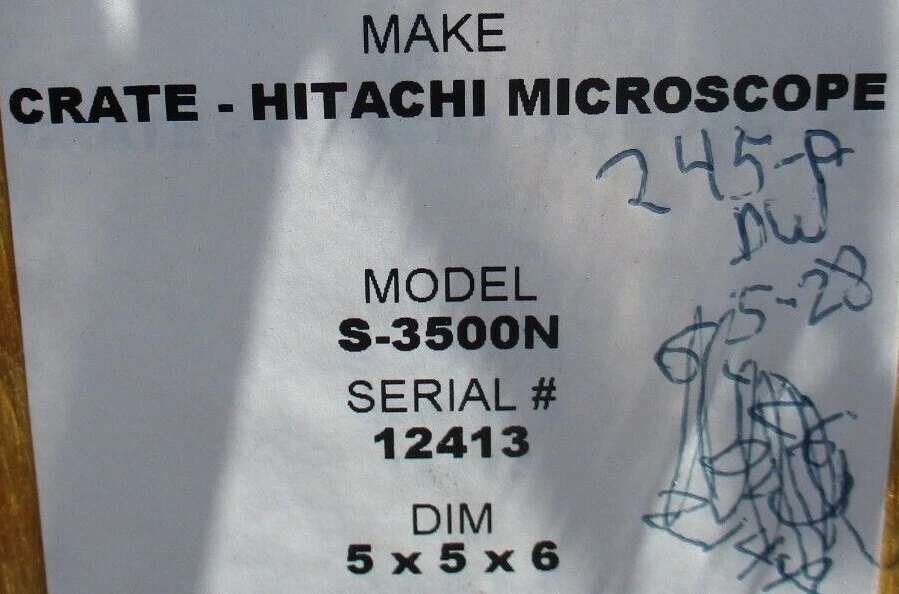 Hitachi #S-3500N, Scanning Electron Beam Microscope Manufacturer: Hitachi-Seiki Model: S-3500N Price: $19,500 USD - Finance for as low as $395/mth Estimated monthly payment valid upon approved credit. Request Info 9 For Sale by TNT Industrial Surplus Record Dealer Since 2007 Contact Seller Orange, CA Jim Thinnsen 714-61...> Show Seller's Phone Number 714-612-1480 Let the seller know you found their listing on Surplus Record! View More TNT Industrial 's ListingsDescription ESED imaging with the VP-SEM allows visualization of surface morphology at higher magnifications than the BSE image. Utilizing the combination of the Hitachi VP-SEMs, and ESED we have imaged various functional film samples. Request More Information from SellerInquire Further with TNT Industrial! "*" indicates required fieldsName*Company*Email* PhoneZip / Postal Code*QuestionMake an OfferRequests Send me a shipping quote I am interested in financingSend Copy Email me a confirmation of this inquiryBuyer Protection Use our partner Escrow.com to buy or sell equipment safelyBuyer Protection Send me info about buyer protectionThis field is hidden when viewing the formDealer Email Buyers Who Viewed This Listing Also Viewed … Fluid Imaging Technology #FlowCam, Imaging MicroscopeCategory: Microscope & Imaging EquipmentSeller: HGR24Location: Euclid, OH Mfr: Fluid Imaging TechnologyModel: FLOWCAMInventory No. 1225-031-0043 Manufacturer Fluid Imaging Technology Model No. FLOWCAM Name Imaging Microscope Arrival Date 12-09-2025 Dimensions L x W x H (inches) Unavailable Weight (lb.) 56 Category Inspection Condition Used Available Quantity 1 Item (47#) 22x15x18, (4#) 17x14x4, (5#) 18x10x6, *contains 3 Pieces. Keyence #VW5000E Motion Analyzer MicroscopeCategory: Microscope & Imaging EquipmentSeller: Orca Machine Tools Inc.Location: Fridley, MN Mfr: KeyenceModel: VW5000EKeyence VW5000E Motion Analyzer Microscope Keyence VH-Z50L ( x50-x500) Keyence Color Keyence Macro Zoom System, Long Distance VW-Z2, Come with all Accessories to Function, Comes in a 1630 Pelican Case Our Inventory # 17836m. Dorsey Gage #14VS, Optical Metrology Microscope, 31" L x 19" width x 39" H, 115 VCategory: Microscope & Imaging EquipmentSeller: Quantum TechnologyLocation: Shippensburg, PA Mfr: Dorsey GageModel: 14VS*Local Pickup Does Not Include any Palletization* '*Handling times for freight shipments average 5 days, but may vary depending on size, weight, location, and current trucking conditions. This does not include shipping time.*, Item Dimensions - L X W X H - 31X19X39, Explore the world in microscopic with the Dorsey ...moreJUST ADDED! Nikon #SMZ800, zoom stereo microscope, 1x-6x zoom range, 6.3:1 zoom ratio, boom standCategory: Microscope & Imaging EquipmentSeller: Frank Bacon Machinery SalesLocation: Warren, MI Mfr: NikonModel: SMZ800Nikon SMZ800 Zoom Stereo Microscope, Nikon Model SMZ800: Zoom Range: 1x-6xZoom Ratio: 6.3:1Dimensions: 30" x 9" x 20" : Boom Stand LED light Ring Infinity 1 Camera (No Software) C-W10xS/22 Eye Pieces 1x Plan Objective FOB Warren, MICleaned, Serviced & Guaranteed30 Day Satisfaction Guaranteed Return Privilege, | ...more Bausch & Lomb #StereoZoom-7, Microscope, w/Stand, Light source, 10x to 70x Magnification, 3" Work Distance, 45 deg. Binocular AngleCategory: Microscope & Imaging EquipmentSeller: Machinery Solutions IncLocation: Lexington, SC Mfr: Bausch & LombModel: STEREOZOOM 7Bausch & Lomb StereoZoom 7, microscope, stand, light source, 10X & 70X magnification, 10X eye piece magnification, SN/35178 Stock# UD15970: Magnification : 10X to 70X Work Distance: 76mm (3") Binocular Angle : 45 deg Eyepieces: Model: 31-51-71 Magnification : 10X Field Number: 20mm.Share × "*" indicates required fieldsYour Name*Your Email* Recipient's Email* Note to Recipient