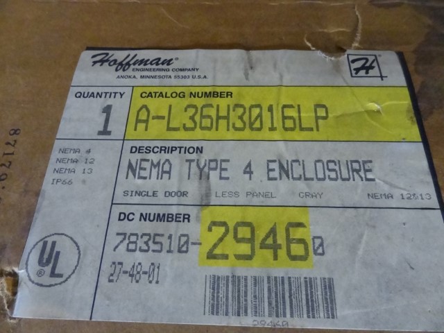 Eaton 5658B16H03 Enclosure 3R Rainproof Type 12 Gray Hardware Key 48" x 20" x 7", Brand: Eaton MPN: 5658B16H03 Type: Enclosure 3R Rainproof Type 12 Color: Gray Comes with hardware bag and key Dimensions: 48" x 20" x 7".