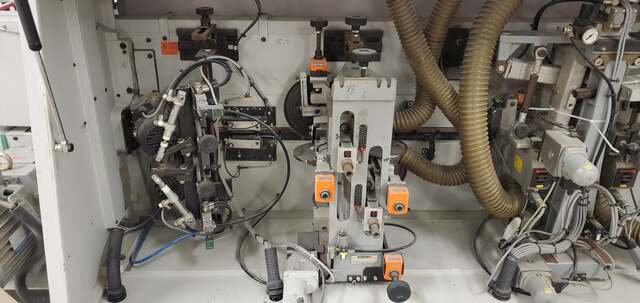 Holz-Her Model Triathlon 1485 Edgebander Edgebanding Capabilities: Edge Thickness: 0.4 mm to 25 mm Edge Type: Tape and solid wood Workpiece Thickness: 6 mm to 60 mm Minimum Workpiece Length: 140 mm Minimum Workpiece Width: 60 mm Maximum Workpiece Length: 6000 mm Feed Speed: Variable adjustable, 8 – 16 m/min ...more