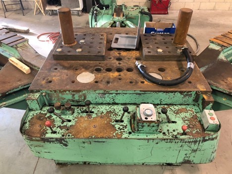 12.5 Ton, Hufford #A-5, extrusion stretch forming press long arm machine Manufacturer: Hufford Model: A-5 Ton: 12.50 Price: $79,500 USD - Finance for as low as $1,612/mth Estimated monthly payment valid upon approved credit. Request Info 5 For Sale by RAAR Group USA Surplus Record Dealer Since 1987 Contact Seller Riverside, CA Rick Schotts 310-48...> Show Seller's Phone Number 310-487-3800 Let the seller know you found their listing on Surplus Record! View More RAAR Group USA 's ListingsDescriptionHufford A-5 Extrusion Stretch Forming PressLong Arm MachineCapacity 12.5 Tons Table Dimensions 30” x 65”Table Height 35.5”Maximum Part Length Formed 219”Minimum Part Length Formed 10”Maximum Sheet Width Formed 10”Maximum Die Height 20”Maximum Die Length @ 180 Deg. 68”Minimum Die Length @ 180 Deg.20” Tension Cylinder Stroke 18.5”Operating Pressure Maximum 2,000 PSIOverall Floor Space Required 23’ 6” x 14’11” F-B Overall Height 4’ 7”Approximate Weight 14,000 lbs.Price: $79,500.00In storage. S. California Request More Information from SellerInquire Further with RAAR Group USA! "*" indicates required fieldsName*Company*Email* PhoneZip / Postal Code*QuestionMake an OfferRequests Send me a shipping quote I am interested in financingSend Copy Email me a confirmation of this inquiryBuyer Protection Use our partner Escrow.com to buy or sell equipment safelyBuyer Protection Send me info about buyer protectionThis field is hidden when viewing the formDealer Email Buyers Who Viewed This Listing Also Viewed … 12 Ton, Hufford #A5, CNC Extrusion Stretch-wrap Former, 115" jaw distance, 40" die length, 42" x 44 working surfaceCategory: Stretch Forming MachinesSeller: National Machinery ExchangeLocation: Newark, NJ Mfr: HuffordModel: A51 - used L&F HUFFORD CNC EXTRUSION STRETCH WRAP FORMING MACHINE, Model A-5, Serial Number 81127-1, DeMott Controls Model D2732-001, Serial Number 2732-2, FORMING TONNAGE 12, JAW AXIAL ROTATION +/- 180 Degrees, DISTANCE BETWEEN JAWS:, Max Length of Part w/ Tension Cylinders fully retracted 115" (2,921 mm), Min Length ...more 12 Ton, Hufford L & F CNC horizontal stretch wrap forming press #A5, 115" part length, Extrusion Die Heads 4" diameterCategory: Stretch Forming MachinesSeller: Century Machinery CoLocation: Los Angeles, CA Mfr: HuffordModel: A5L&F HUFFORD HORIZONTAL CNC Extrusion STRETCH WRAP FORMER (Stretch Forming Press), Model A-5, FORMING TONNAGE 12, DISTANCE BETWEEN JAWS 115" (2,921 mm), ARM SWING (each Arm has Independent Movement) 10° Forward to 90° Back., DIE LENGTH at FULL TONNAGE and 180 degrees Wrap:, Minimum 11" ...more 17.5 Ton, Hufford #A-10, stretch wrap forming machine, 30" x65" tbl., toolingCategory: Stretch Forming MachinesSeller: Sterling Machinery ExchangeLocation: South El Monte, CA Mfr: HuffordModel: A-10Capacity 17.5 Tons Table Dimensions 30" x 65" Table Height 35.5" Maximum Part Length Formed 219" Standard Arm Minimum Part Length Formed 10" Maximum Die Height 20" Maximum Die Length 180 Deg. 68" Minimum Die Length 180 Deg. 20" Tension Cylinder Stroke 18.5" Operating Pressure Maximum 2,000 PSI Overall Floor Space ...more 20 Ton, Cyril Bath #Type-20T, 20-200kN stretching force, 30" x150"part length, 12 Axes,Cyril Bath Control, #43149Category: Stretch Forming MachinesSeller: Prestige Equipment CorpLocation: Melville, NY Mfr: Cyril BathModel: TYPE 20TYear: 1997Tonnage: 20 Ton, Component Length: 30" - 150", Number Of Axes: 12, Auxiliary Axes: 4, Stretching Force: 20 - 200 kN, Bending Angle: 2 x 95, Rotation Stretching Cylinder: 2 x 45/225, Cyril Bath Control, Rexroth Hydraulics, 2 - 60 HP Hydraulic Pumps, 168 HP Motor, s:, Cyril Bath Control, Rexroth Hydraulics, 2 - 60 HP ...more L & F #L1000-100-40, CNC, 0-480" distance jaws, 36" stroke, 50 -500 Tons per jaws, 1000 tons, 48"x96" die table, 1990Category: Stretch Forming MachinesSeller: Industrial Machine Tools IncLocation: Anacortes, WA Mfr: L & FModel: L1000-100-40Year: 1990Share × "*" indicates required fieldsYour Name*Your Email* Recipient's Email* Note to Recipient