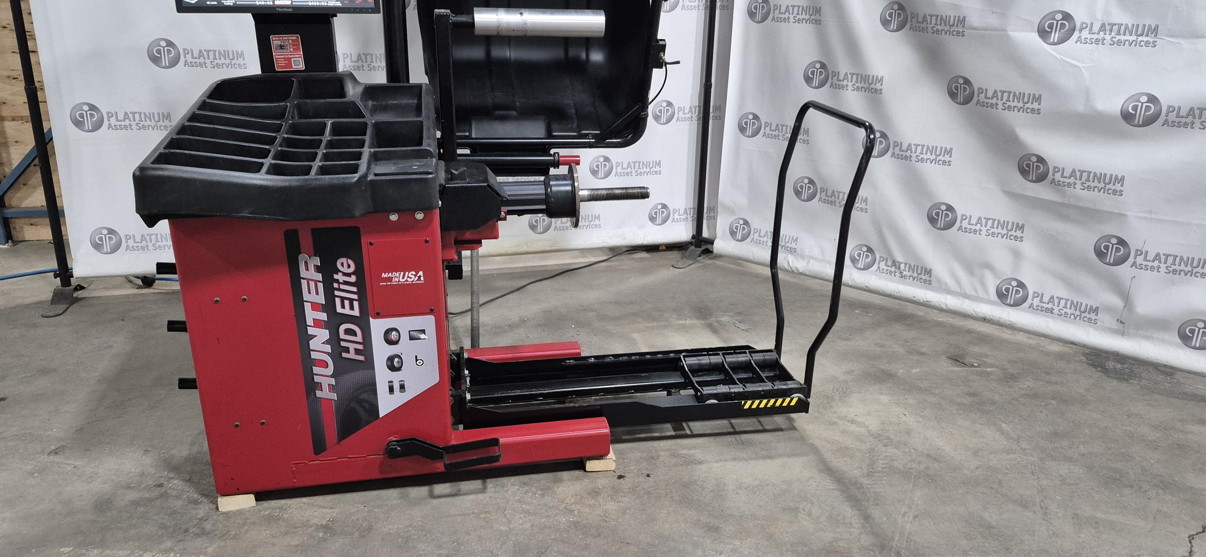 2023, HUNTER, ELITE (72-710-I), HEAVY DUTY, ROAD FORCE TIRE BALANCER, TRUCK KIT ADAPTER, HEAVY DUTY APPLICATIONS UP TO 52" DIAMETER, UP TO 500 LBS., FOR CAR AND LIGHT TRUCK APPLICATIONS, NO TOCH LASER VISION CAMERA, INTEGRATED POWER WHEEL LIFT, AUTOMATIC WHEEL RUNOUT MEASUREMENT, AUTOMATIC CANTERING, 230/1/60 V, S/N AHC4445