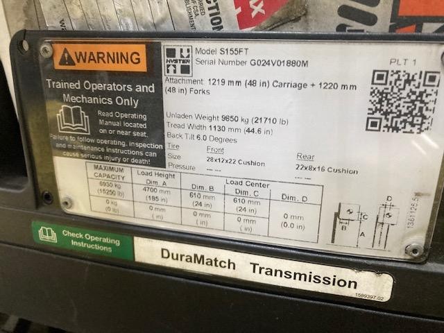 HYSTER MODEL S155FT 15,500 LBS. FORK LIFT