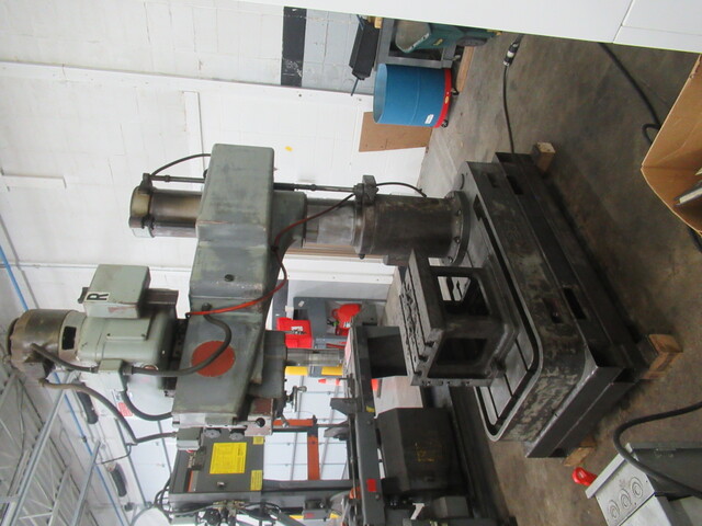 4' FOSDICK SENSITIVE RADIAL DRILLING MACHINE S/N: 20866,… NEW: 1970 :SPINDLE TO FACE OF COLUMN. 48" MAX. SPINDLE TO FACE OF COLUMN. 9" MIN. DIAMETER OF COLUMN. 12" HORIZONTAL TRAVEL OF HEAD ON ARM.″9" BASE TO SPINDLE MAX./MIN. 44" /″2" TABLE TO SPINDLE MAX. ...more