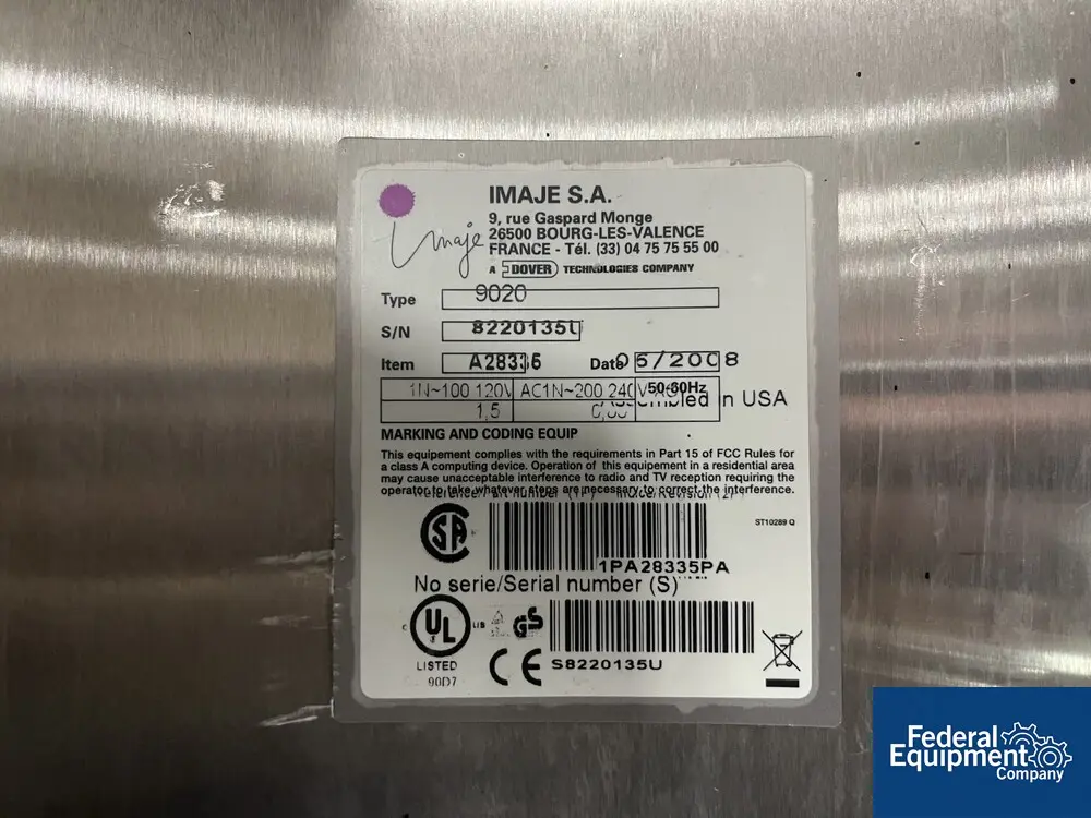 Used Imaje inkjet printer, type 9020, with print head and user interface/controls, 115 volts, on stand, serial# 8220135U, built 2008.