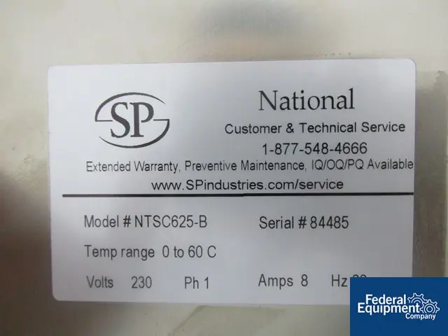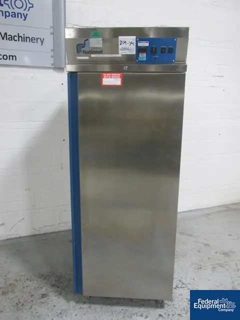 Used National Incubator, model NTSC625-B, stainless steel interior, 21" wide x 24" deep x 52" high chamber, with shelves, 0 to 60 C temperature range, 230 volt, serial# 84485.