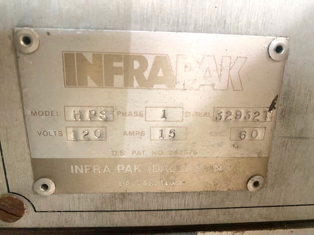Infrapak, stretch pallet wrapper, 60" rotary table, 60" vertical travel, variable speed film carriage