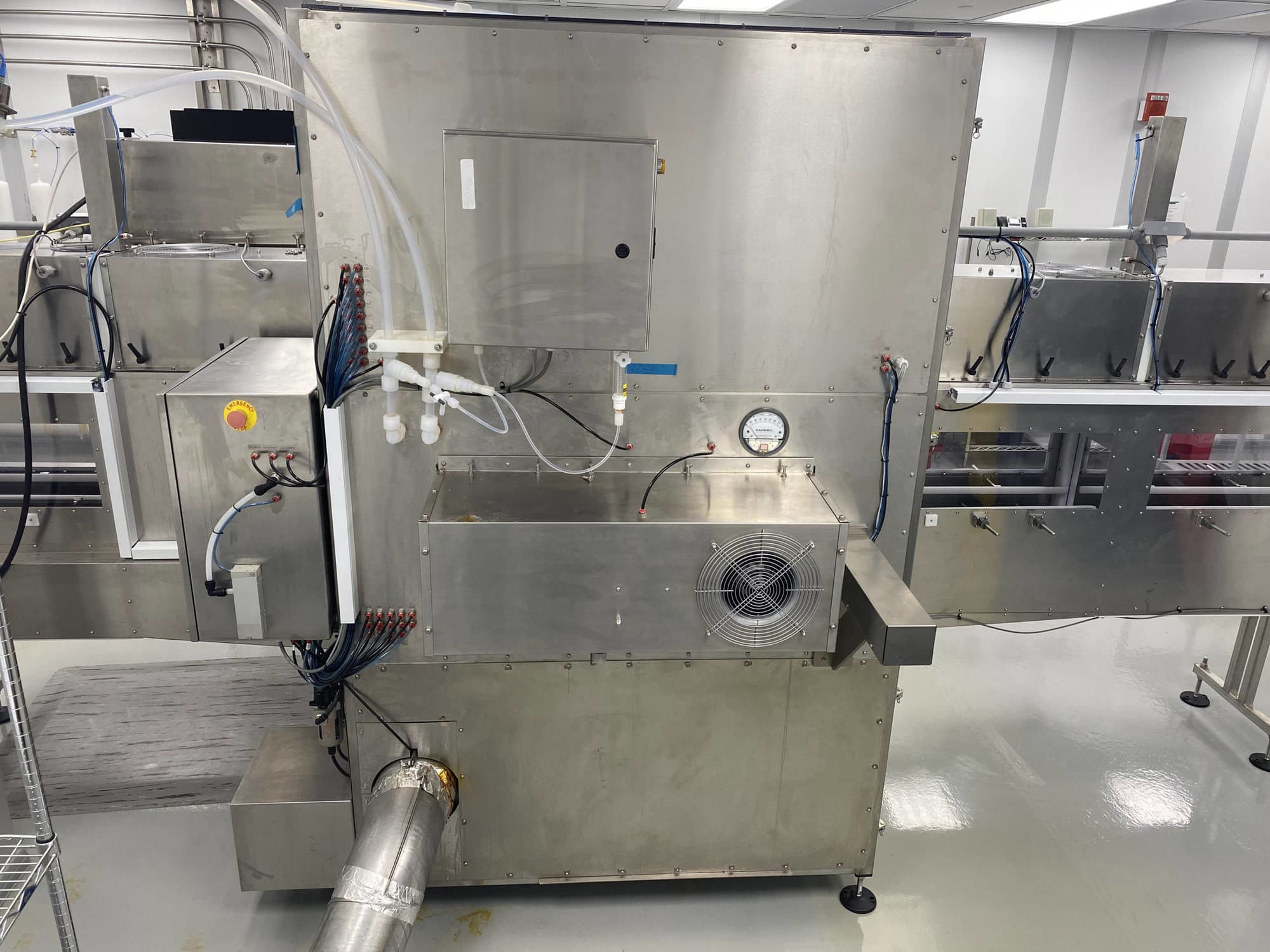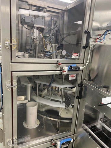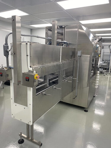 – Set up to run 4 liter jars – Bottle Counter and Batch Counter – Triple Airlocks, In-Feed Airlock, Air Rinse Airlock, and exit/Accumulation Airlock. – Manual loading and unloading