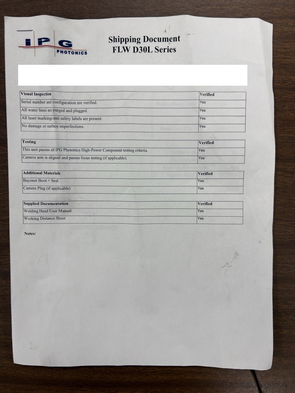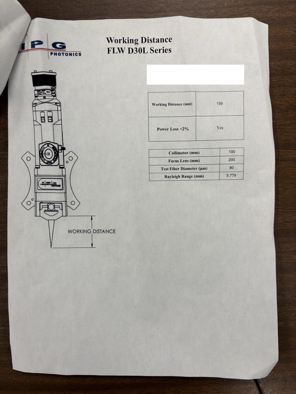 Year: 2022, Make: IPG, Model: 1500 Watt Lightweld, 1500 Watt, 200-240 VAC, Phase: Single, Full Load Current: 24A, Maximum Breaker Size: 30A, *Personal inspection of all equipment is highly encouraged*, **Sold As-Is, Where-Is with no Guarantees**.
