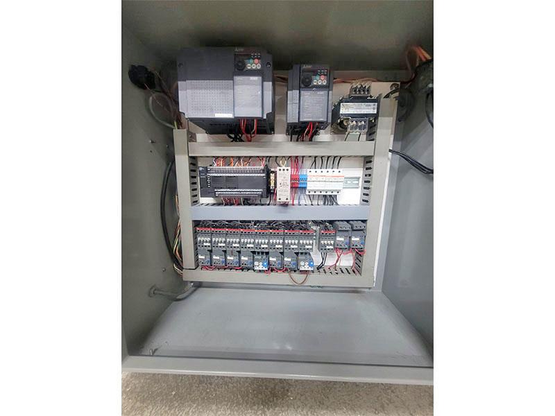J & P MACHINE - 4-RSDC: Pocket Hole Boring Machine Through-FeedPocket hole grooving & boring machine is ideal for making frames in kitchen, furniture and similar industries.Loading the hopper magazine holds: (25) Pieces of 3/4″ thick material.Machine operates automatically by: Feeding, stopping, clamping, grooving, and boring the material in (1) continuous operation.Specifications -- Fast setup for grooving & boring with: Precision mechanical indicators to the accuracy of 1/10 mm. -- (4) High Frequency router heads with drilling. -- Closes to a min.: 7″. -- Opens to a max.: 48″. -- Min. width: 1-1/2";. -- Max. width: 6″. -- (1 or 2) Grooves per side can be selected. -- High Frequency motors with: 1/2" Collets; adjustable from 12,000 - 18,000 RPM with electronic inverter. -- PLC Controls. -- Precision linear bearings in opening & closing base. -- Produces approx.: (10 – 15) Pieces/ per Min. -- Requires: (1) Operator. -- 440 Volts - 3-Phase. -- 90 PSI Air required. -- Dust Collector hoods. -- DIM: 90″ Long x 36″ wide x 55″ high. -- Weight: 2,000 Lbs (approx.). Also included: -- Dust hood (spider type).