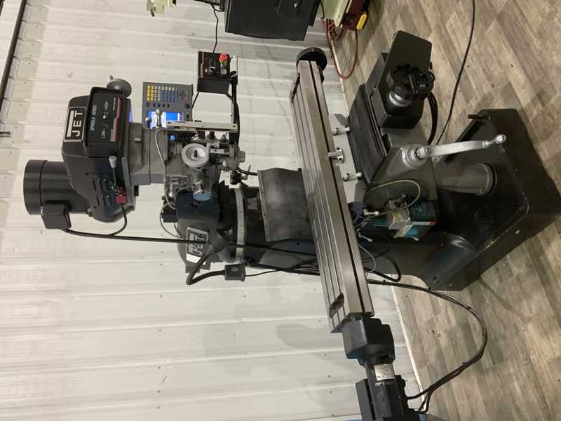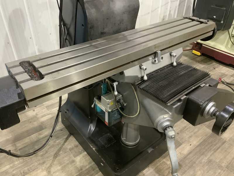 MODEL.: RB-10, YEAR.: 1994, TABLE SIZE.: 9" X 42", LONGITUDINAL TRAVEL.: 30", CROSS TRAVEL.: 12", HEAD TRAVEL.: 187", SPINDLE QUILL TRAVEL.: 5", SPINDLE SPEEDS.: 60 TO 4500 RPM, TAPER IN SPINDLE.: R8, FEEDS.:.0015,.003,.006, MAIN DRIVE MOTOR.: 3 HP, CONTROL.: PROTO TRAK MX2, Machine Type.Millers, Vertical ...more